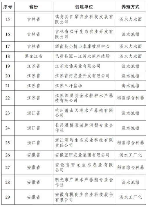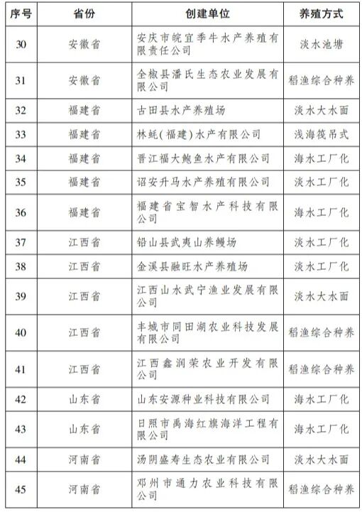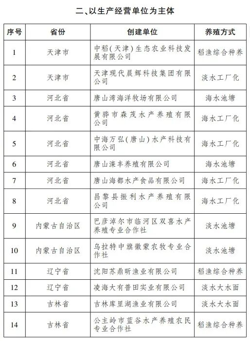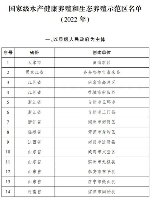 水产健康养殖和生态养殖示范区名单