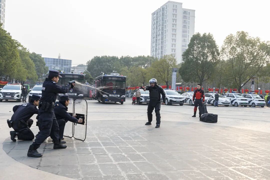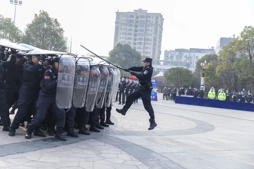 随后,特巡警大队和马家店安保巡逻大队分别进行了擒敌拳、警棍盾牌操、个人极端案事件处置及盾牌防暴技术四个科目的演示,赢得了群众的阵阵掌声,将活动现场的氛围推向了高潮。