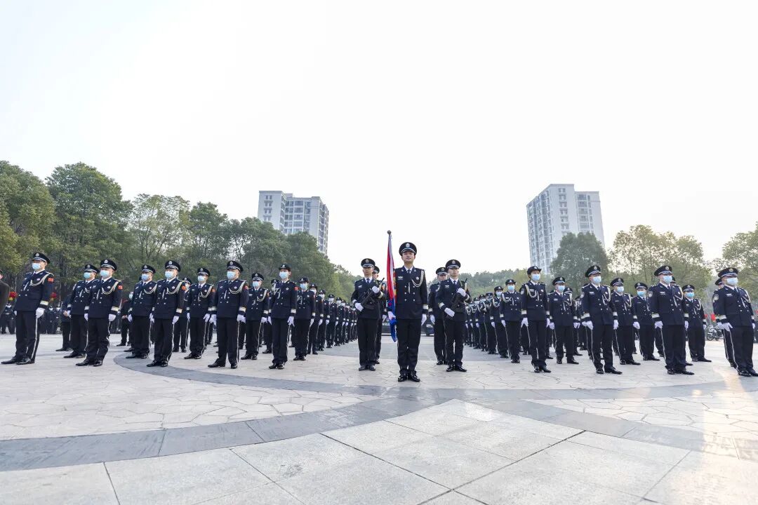 “我是中国人民警察,我宣誓......”参加仪式的民警面对警旗庄严宣誓。