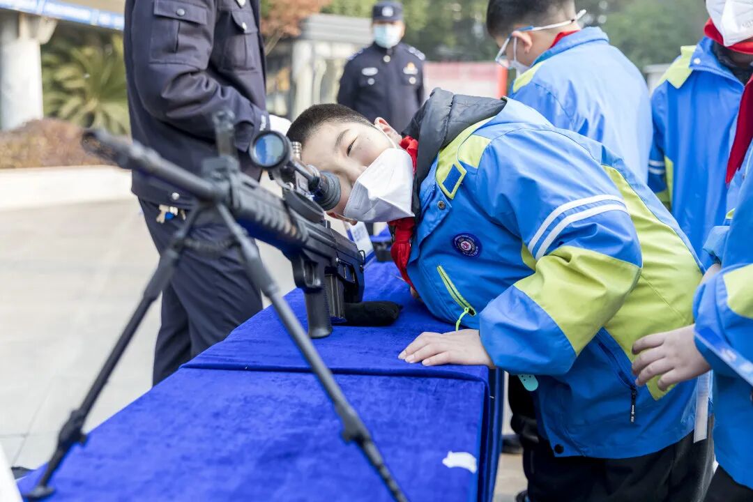 高精度狙击步枪、防暴枪、手枪……在警用装备展示区,平日里难得一见的警用特种装备前围满了小朋友,现场展示的警用装备让他们充满好奇,忍不住一探究竟。