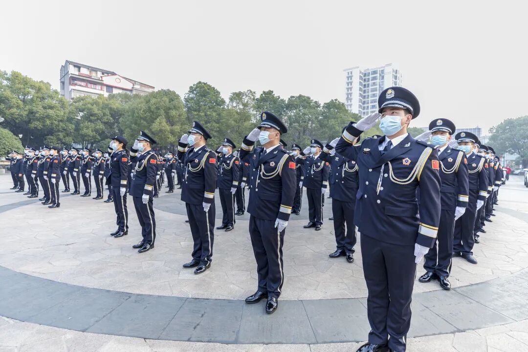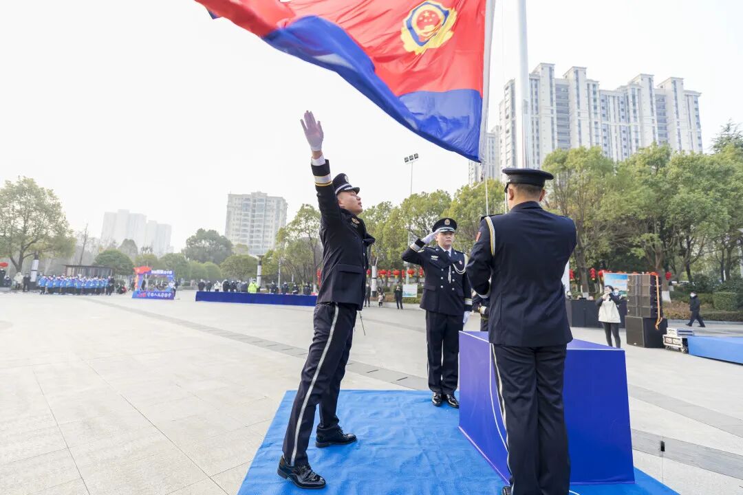仪式现场,110名民警身着警礼服整齐列队,警容严整,士气高昂。上午9时,“致敬警旗”正式开始,5名护旗手迈着铿锵有力的步伐,护送警旗入场。伴随着雄壮激昂的《中国人民警察警歌》,鲜艳的警旗在全体民警的注视下缓缓升起,迎风飘扬,全体民辅警面向警旗敬礼。