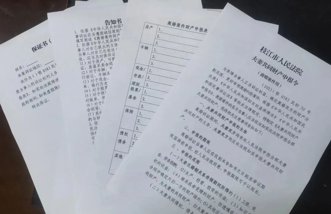 枝江法院为全面贯彻落实《中华人民共和国妇女权益保障法》,先后研究制定了《离婚案件当事人夫妻共同财产申报令》《离婚案件当事人夫妻共同财产申报表》《保证书》等一系列法律文书,并在向离婚诉讼当事人送达受理案件通知书和应诉通知书时同时送达。该制度的施行将有助于人民法院在审理离婚案件时,最大限度查实涉诉夫妻的财产状况,确保依法公正审理离婚案件中夫妻共同财产分割,减少离婚后财产纠纷重新激化矛盾,推动矛盾纠纷一次解决,提升审判质效,促进案结事了,同时,为当事人构建更加诚信、透明的诉讼环境。