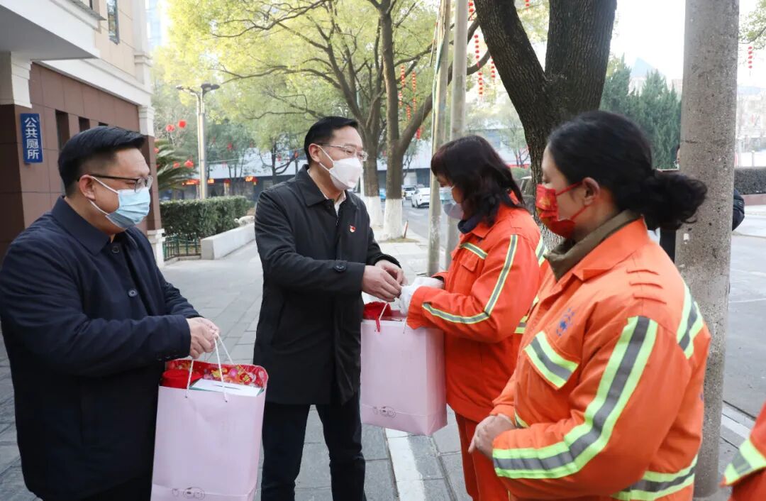 “我们的城市越变越美丽,是大家辛勤劳动的成果,我代表市委、市政府向大家表示感谢。”在礼化路环卫驿站,余峰将慰问品送到环卫工人手中,详细询问他们的工作生活情况,对他们的辛苦付出表示感谢,叮嘱大家做好个人防护、保护自身健康。余峰要求相关部门要加强对一线职工的关爱服务,科学调配力量,合理排班轮岗,让大家安心值守、愉快过年。