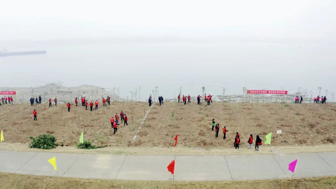 在七星台镇董家湾村长江外滩植树点,一片繁忙的景象。400余名党员干部分工协作,相互配合,一起挥锹铲土、培实新土,大家热情高涨、挥汗如雨、干劲十足。在大家的共同努力下,1500余株大叶女贞依江而立,迸发浅浅绿意。