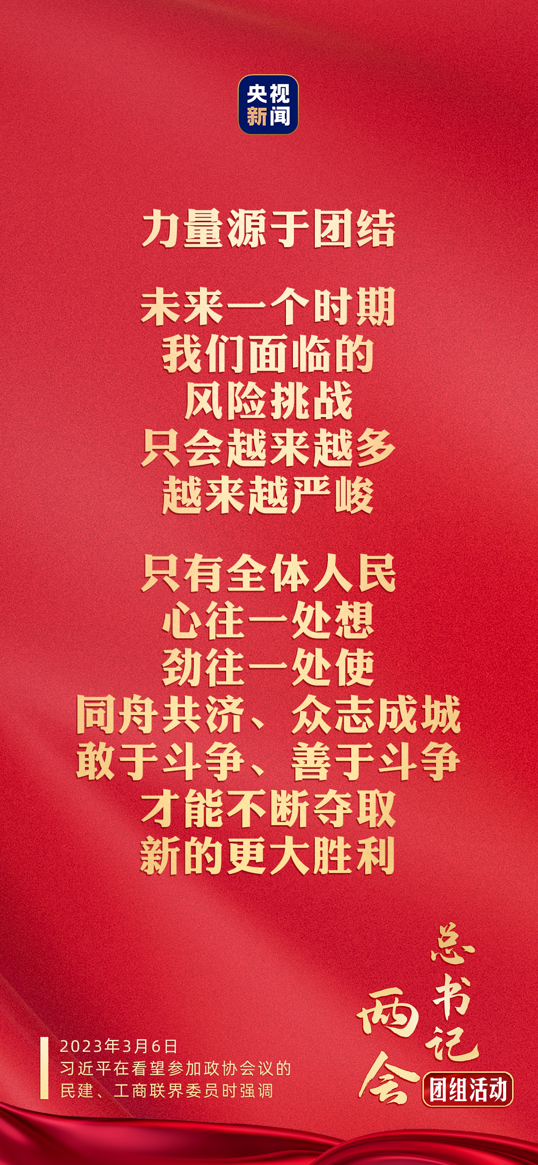 在“三八”国际劳动妇女节即将来临之际,习近平代表中共中央,向参加全国“两会”的女代表、女委员、女工作人员,向全国各族各界妇女,向香港特别行政区、澳门特别行政区和台湾地区的女同胞、海外女侨胞,致以节日的祝贺和美好的祝福!中共中央政治局常委、全国政协十四届一次会议主席团会议主持人王沪宁,中共中央政治局常委蔡奇、丁薛祥参加看望和讨论。联组会上,曾毓群、解冬、刘振东、陈小平、谢茹、孙东生等6位委员,围绕占领全球新能源产业制高点、金融支持科技创新、为中小企业发展创造更好条件、促进平台经济高质量发展、推动乡村产业振兴、进一步发挥民营经济优势和活力等作了发言。习近平在认真听取大家发言后发表重要讲话。他表示,很高兴来看望全国政协民建、工商联界委员,同大家一起讨论交流。他代表中共中央,向在座的各位委员,并向广大民建、工商联成员和非公有制经济人士,向广大政协委员,致以诚挚的问候。习近平强调,2022年是党和国家历史上极为重要、极为关键的一年。在国际环境风高浪急和国内面临多重超预期因素冲击的情况下,经过全体人民团结奋斗、顽强拼搏,我们办成了几件事关重大、影响长远的大事,党和国家事业取得了丰硕成果。中国共产党胜利召开第二十次全国代表大会,擘画了全面建设社会主义现代化国家的宏伟蓝图。我们克服新冠疫情等困难挑战,如期安全顺利举办北京冬奥会、冬残奥会。我们动态优化调整防控政策措施,较短时间实现了疫情防控平稳转段,新冠病亡率保持在全球最低水平,取得疫情防控重大决定性胜利。我们完整、准确、全面贯彻新发展理念,着力构建新发展格局、推动高质量发展,在全球通胀达到40多年来新高的情况下,我国物价总水平保持平稳,全年经济增长3%,在世界主要经济体中是很高的。这些成绩的取得,实属不易。