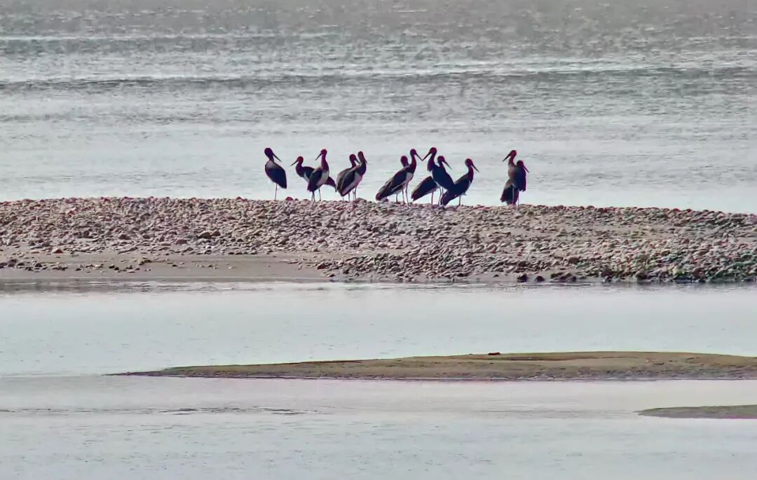 据介绍,这已经不是第一次在枝江观测到黑鹳栖息,位于长江中上游结合处的枝江,一直是黑鹳的重要越冬栖息地。枝江市百里洲南河区域拥有原生的自然生态、大面积的滩涂和丰富的鱼类,并且较少受到人类干扰。2022年12月起,枝江市自然资源和规划局携手宜昌市林业和园林局、宜昌观鸟爱好者服务中心、枝江市森林植物野生动物保护站等单位,对在枝江百里洲南河区域越冬的黑鹳进行了为期3个月的观测,观测次数共60次,发现在百里洲南河区域越冬的黑鹳数量为29只,相比2022年同期观测到的15只有所增加。