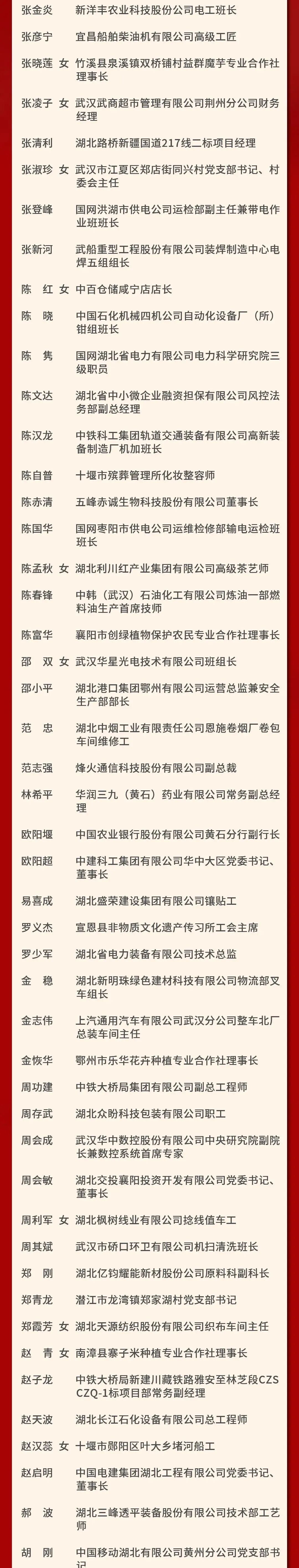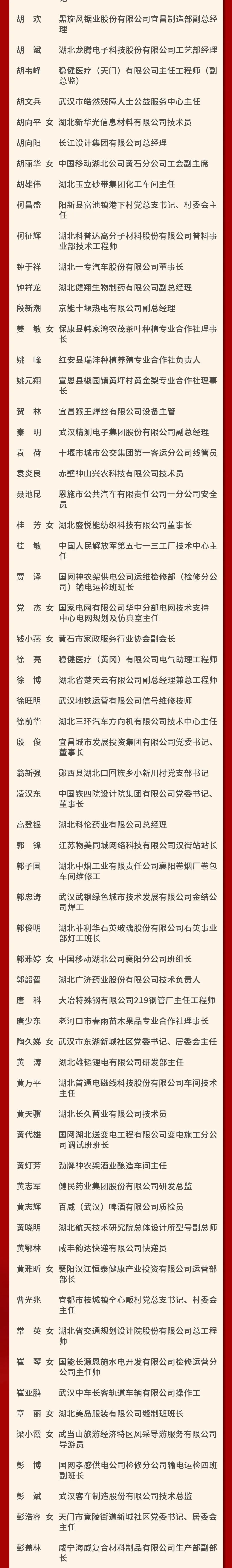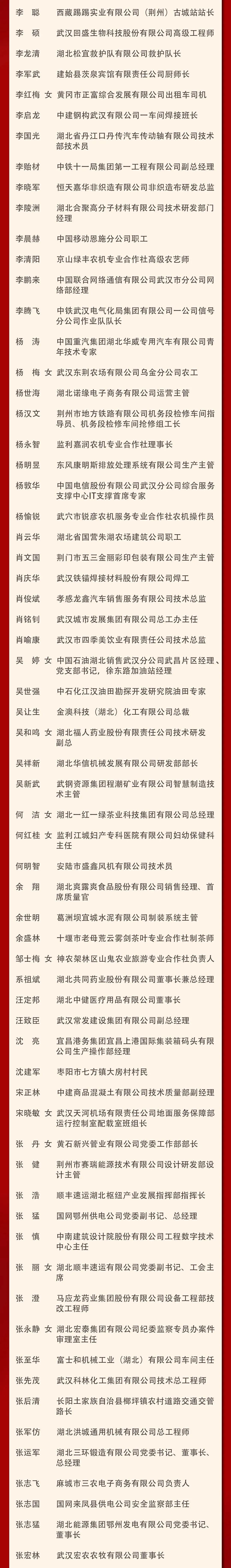 本届受表彰者平均年龄43.7岁,年龄最大的64岁,年龄最小的24岁,在我省地域和行业上实现了全覆盖,涵盖了全省经济社会发展各个领域和社会各个阶层,从不同角度展现了全省建设者的卓越风采,全面广泛地代表了湖北各界劳动群众的时代风貌。