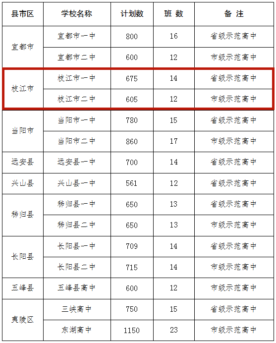 枝江市一中、枝江市二中、