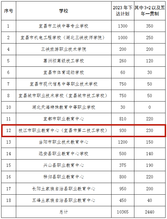 2023年宜昌市高中阶段教育招生计划