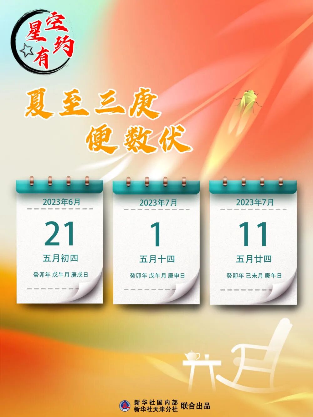俗语说:“夏至三庚便数伏。”意思就是夏至之后的第三个庚日是初伏的第一天。