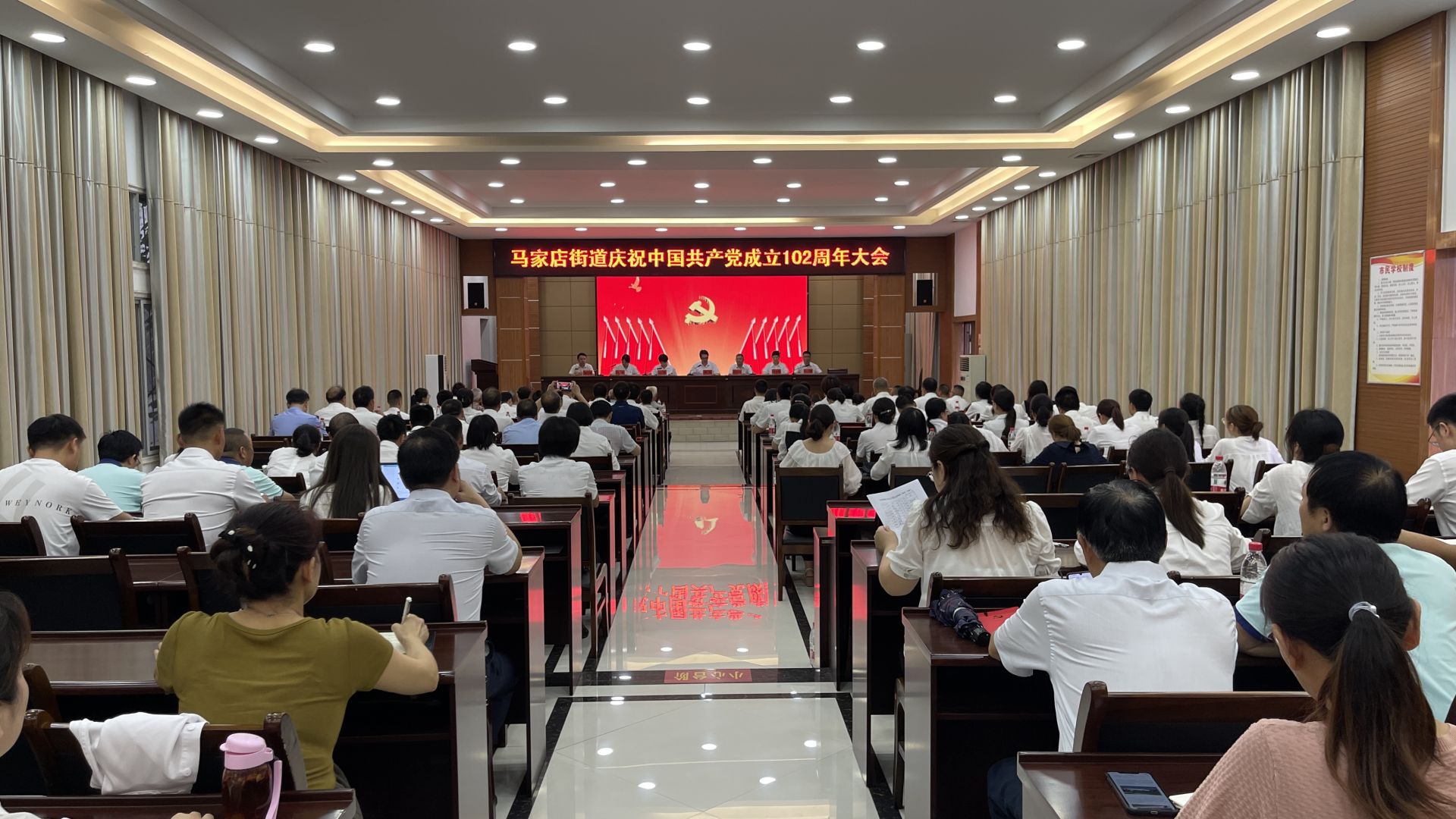 枝江融媒(通讯员 孙梦媛)6月29日下午,马家店街道召开庆祝中国共产党成立102周年大会。街道领导班子、全体机关党员、各村(社区)党组织书记和组织委员、各处直单位党组织书记或负责人,以及非公企业党组织书记、光荣在党50年党员代表、“两新”党组织优秀共产党员代表200余人参加会议。
