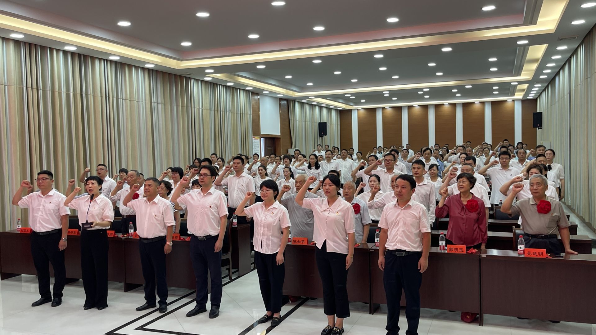 大会在庄严的国歌声中拉开帷幕。“我志愿加入中国共产党,拥护党的纲领,遵守党的章程,履行党员义务......”在街道党工委组织统战委员的领誓下,全体党员面向党旗,重温入党誓词。