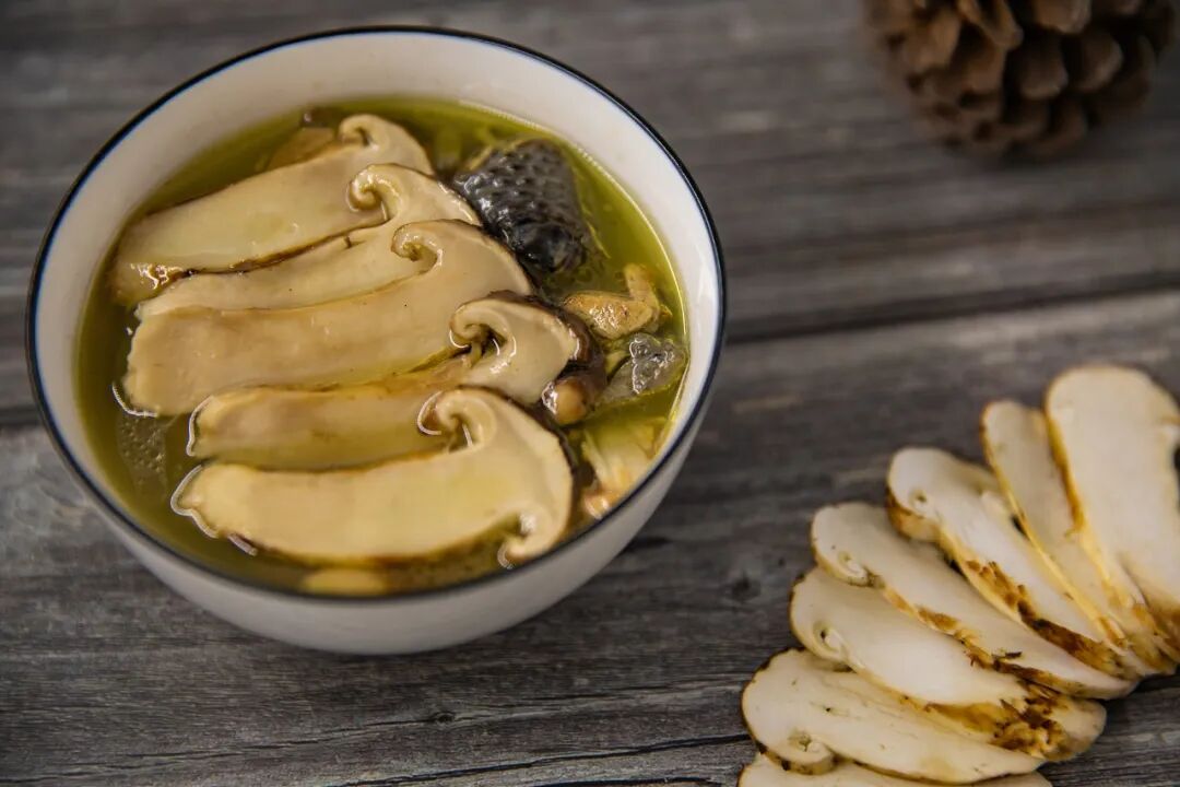 松茸。味道鲜美,营养丰富,含有蛋白质、维生素B1、维生素B2、尼克酸、钙、磷等营养成分。吃法有很多种,适合炒、煎、烩和炖汤等。