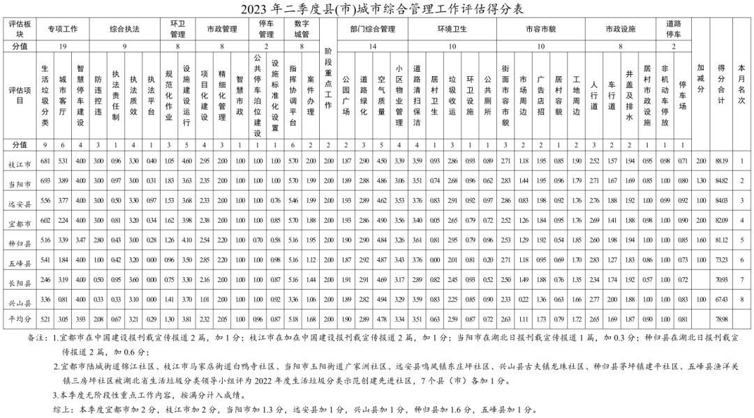 2023 年二季度县(市)城市综合管理评估得分表