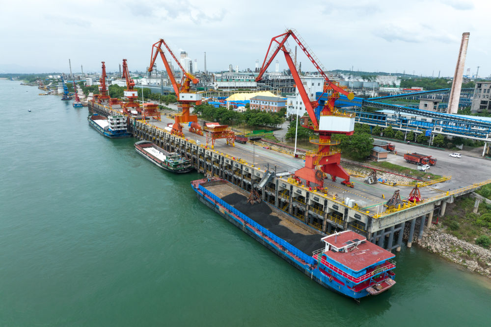 湖北宜昌枝江市姚家港化工园码头(无人机照片)。新华社记者肖艺九 摄