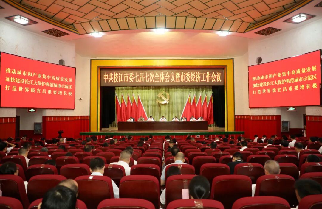枝江融媒(记者 谢逸舟 方伟 张枭羿 刘祥森)8月25日,中国共产党枝江市第七届委员会第七次全体会议暨市委经济工作会议召开,深入学习贯彻党的二十大精神和习近平总书记关于长江经济带发展的重要讲话和指示批示精神,认真贯彻落实省第十二次党代会、省委十二届四次全会和宜昌市第七次党代会、宜昌市委七届五次全会暨市委经济工作会议部署要求,研究分析上半年经济运行情况,安排部署下半年工作任务,动员全市上下统一思想、坚定信心、铆足干劲,敢打头阵、勇做先锋、争当标杆,推动城市和产业集中高质量发展,加快建设长江大保护典范城市示范区、打造世界级宜昌重要增长极。