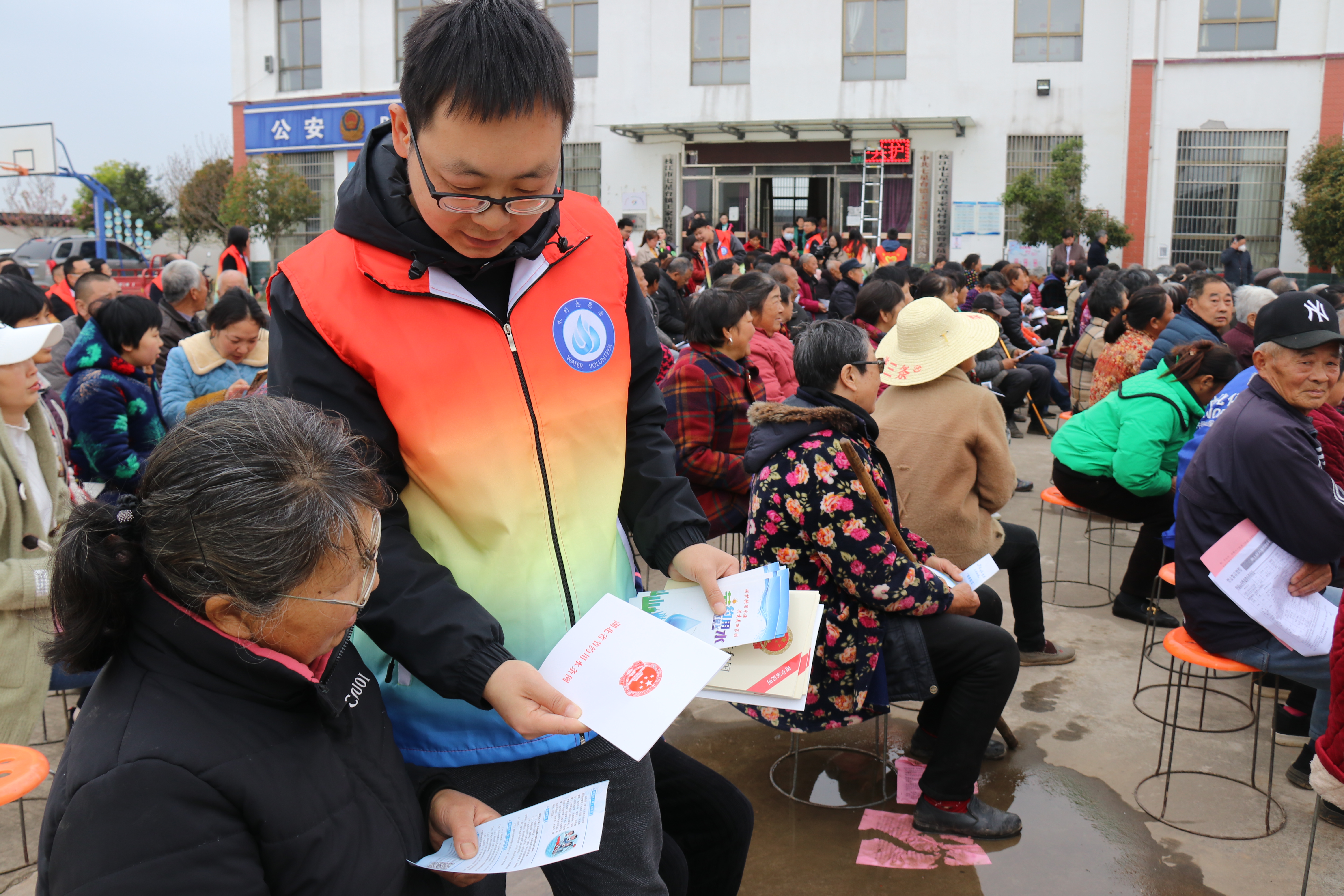 文艺演出开始之前,“亲清长江”志愿服务队员们向村民发放水事法律法规宣传资料,宣传湖北省节约用水条例、公民节约用水行为规范、水土保持法等,耐心解答村民提出的有关涉水法律方面的问题,讲解保护水资源、水环境、节水、爱水的有关规定和知识。累计发放宣传单800余份,宣传手册300余本。