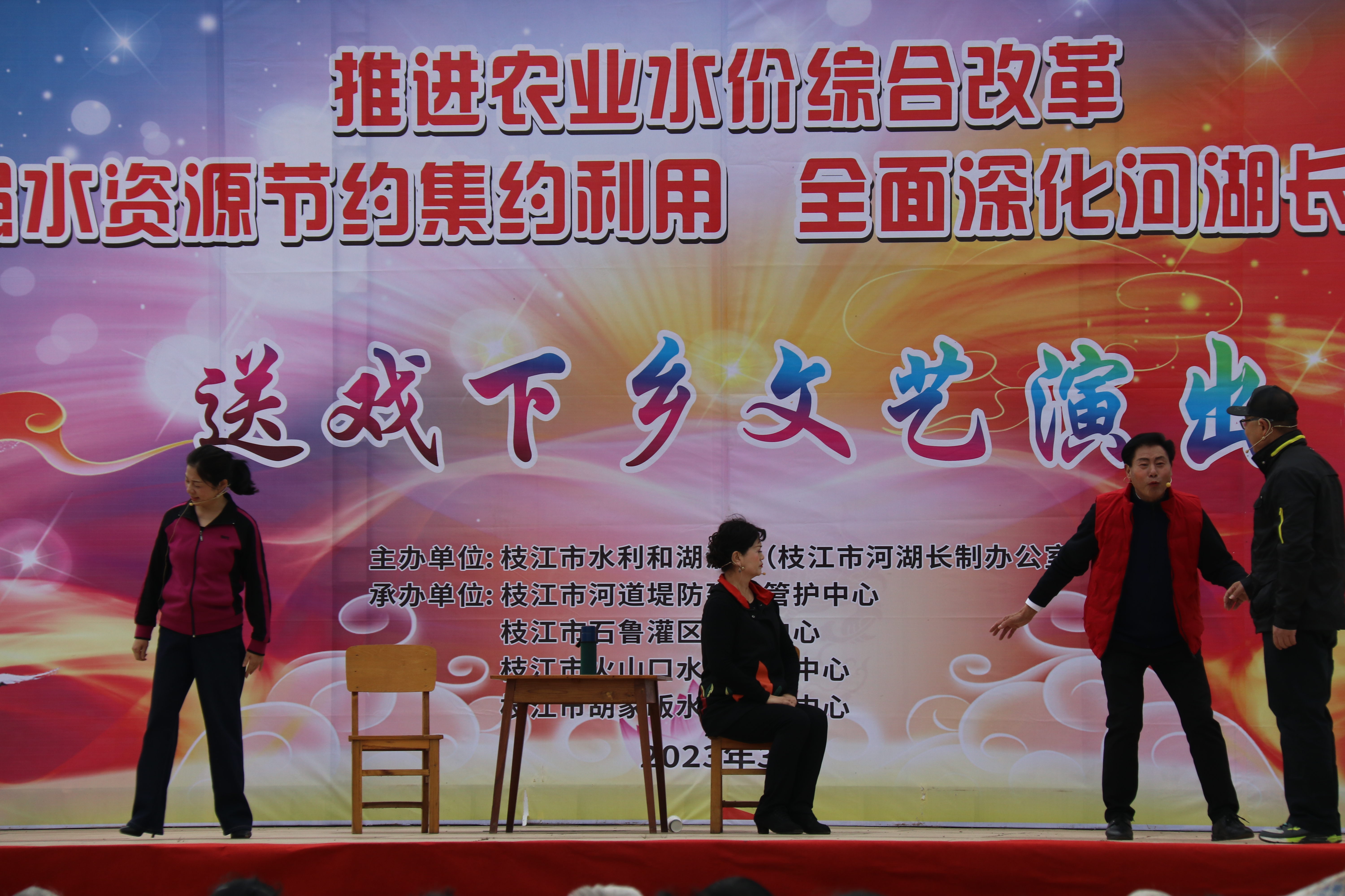 3月22日,枝江市水利和湖泊局在七星台镇王家店村开展了2023年世界水日暨送戏下乡宣传活动。活动旨在提升全民节水意识,营造全社会关心、节约和保护水资源的浓厚氛围。
