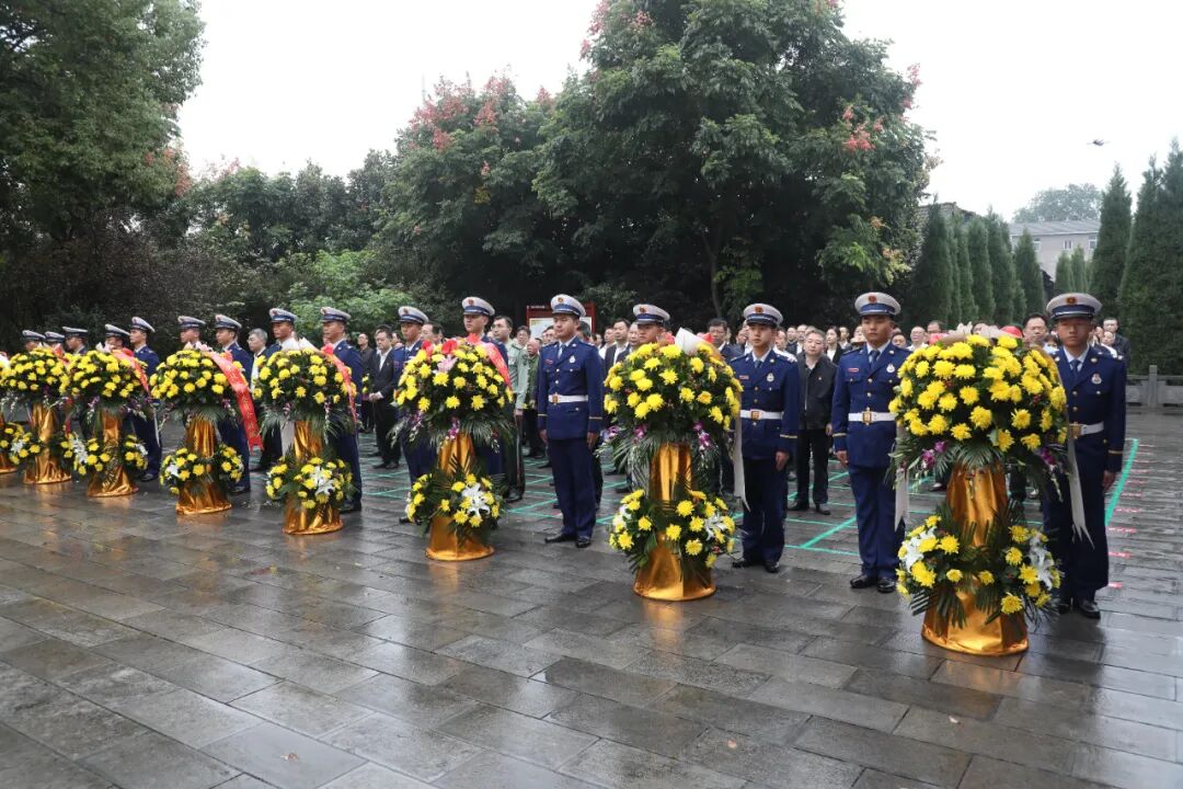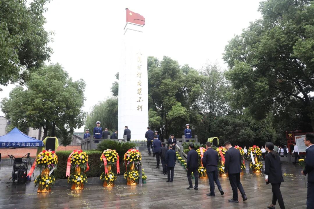 伴随着深情的《献花曲》,十六名礼兵托起花篮缓步迈上阶梯,摆放在纪念碑基座前。市委书记余峰仔细整理花篮绶带、肃立凝视,随后缓步登上纪念碑基座,在花篮前驻足凝视、鞠躬。参加仪式的全体人员依次献花,朵朵鲜花寄托着对革命先烈的深切缅怀和无限追思。