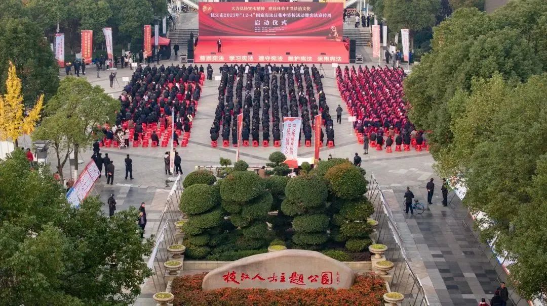 枝江融媒(记者 谢逸舟 刘颖杰 徐露 李贤 杨沛裕)今年12月4日是中国第十个国家宪法日,当天,枝江市2023年“12·4”国家宪法日暨“宪法宣传周”集中宣传活动在市人大主题公园举办。来自全市各界人士代表近千人参加活动。市委书记余峰,市委副书记、市长黄芳帅出席活动。