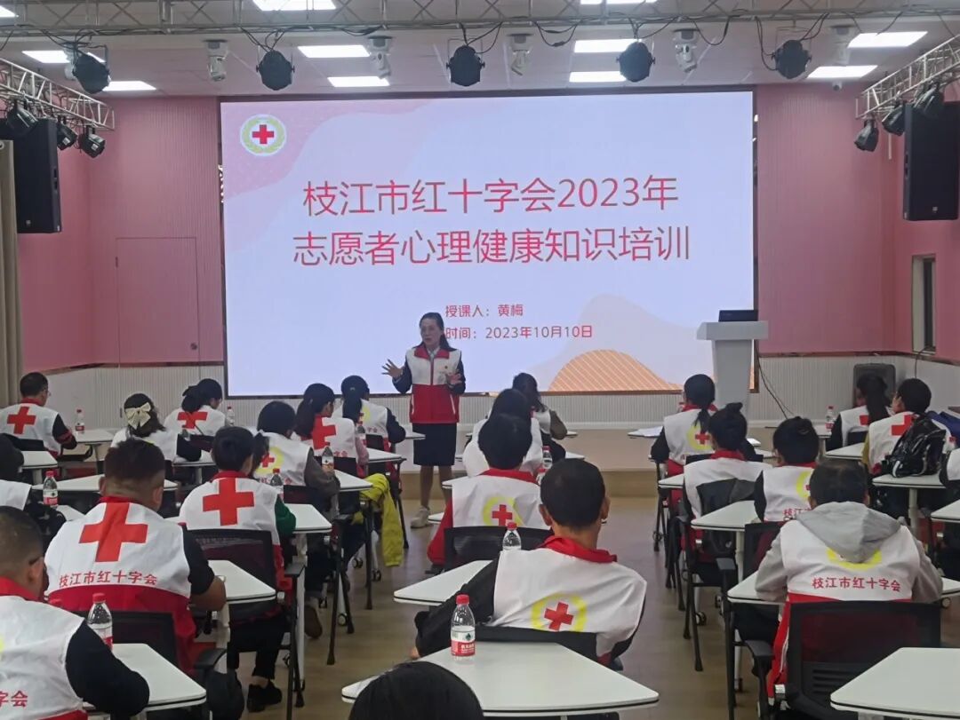 10月10日下午,枝江市红十字会走进工人文化宫,对50余名骨干红十字志愿者们进行救护知识培训暨心理健康知识两场培训。枝江市红十字会党组书记、常务副会长姚芳做动员讲话。