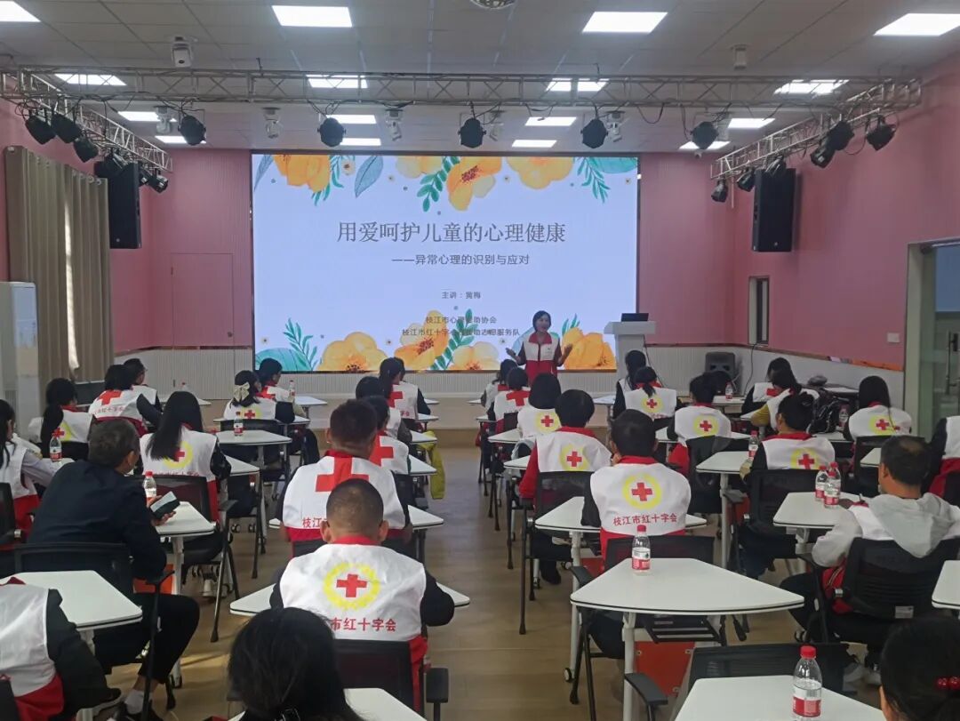 随后,由市红十字心理援助志愿服务队队长黄梅老师开展心理健康知识讲座,她以“用爱呵护儿童的心理健康——异常心理的识别与应对”为主题,带领志愿者们探讨“孩子难管教的原因”、“孩子需要什么”等问题,让家长理解孩子的成长心理,学会让孩子在家庭教育中享受到尊重与理解、赞美孩子的优点、肯定孩子的专长,建立孩子的自信心。