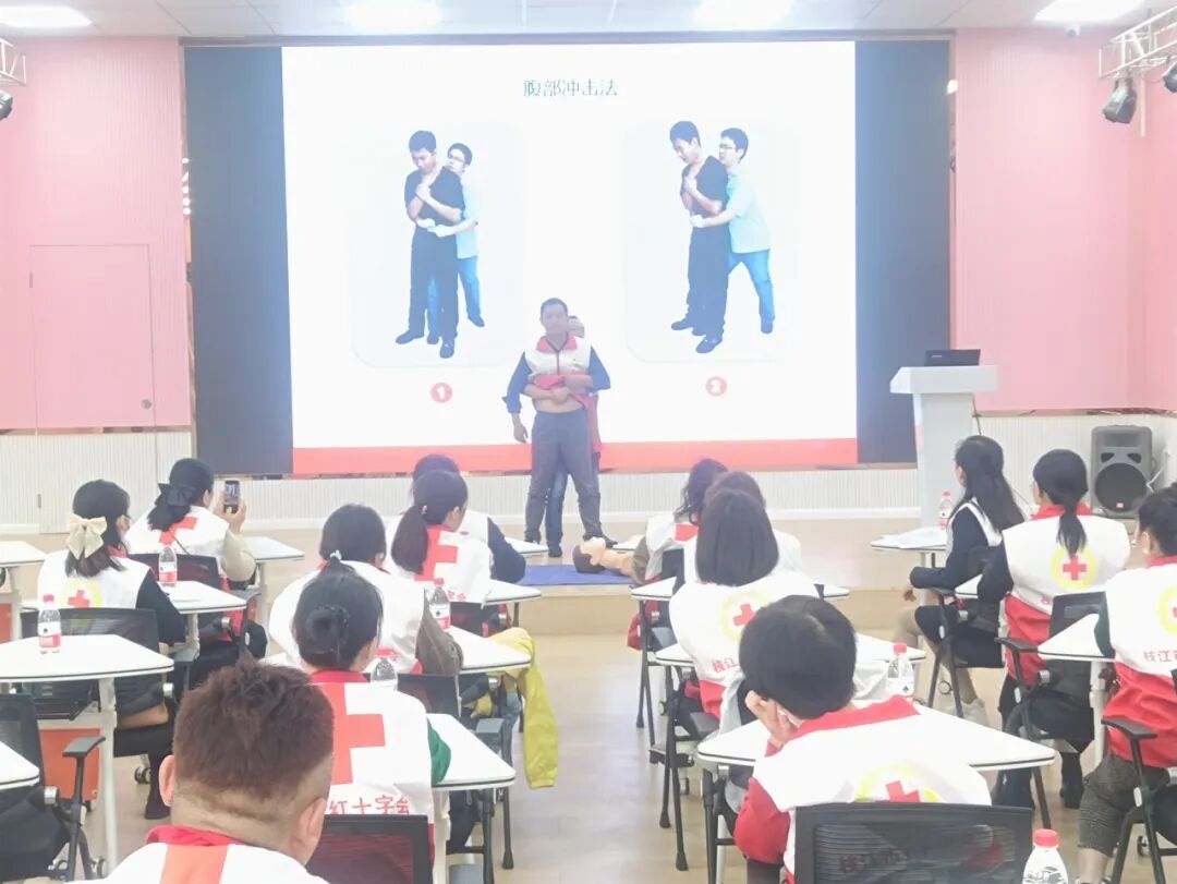 市红十字救在身边志愿服务队队长唐国平通过通俗易懂的语言及现场示范讲解了红十字知识、心肺复苏、成人及婴儿海姆立克急救知识,增强了志愿者的急救意识,提升了志愿者突发情况下的应变能力。