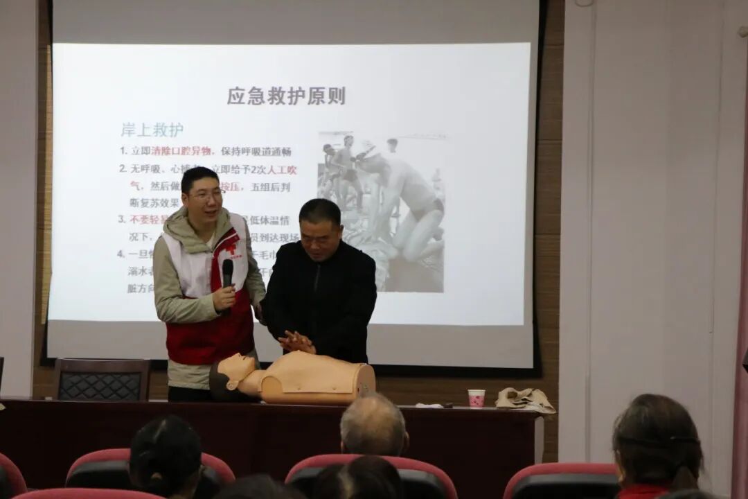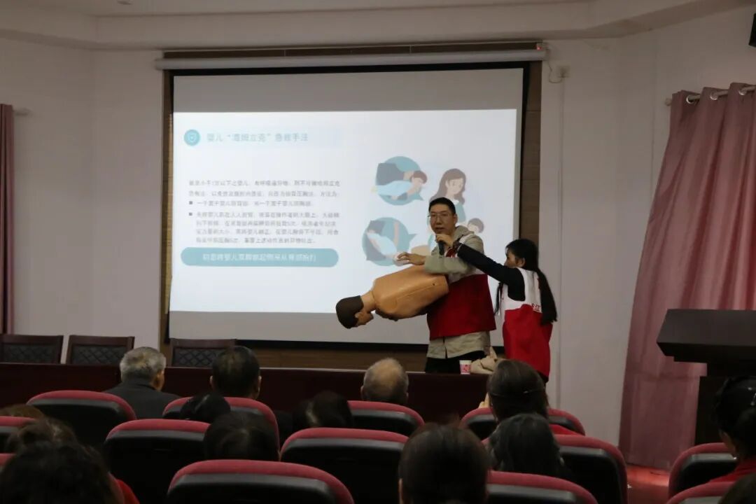 10月10日上午,枝江市红十字会走进丹阳社区,首先由红十字救护师资吕龙通过演示及互动,为在座居民们重点讲解了心肺复苏、海姆立克急救法、常见急症应对处理等急救知识。