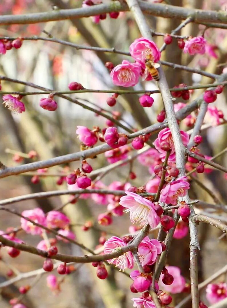 枝江融媒(记者:曹云桐)3月伊始,暖风拂来,又到一年一度的赏梅季,粉红娇嫩的花朵迎春绽放,清香淡雅,让人心旷神怡,枝江市问安镇殿春红梅园的梅花已经进入全盛期,游客们纷纷在花树下拍照打卡,欢笑声不绝于耳。