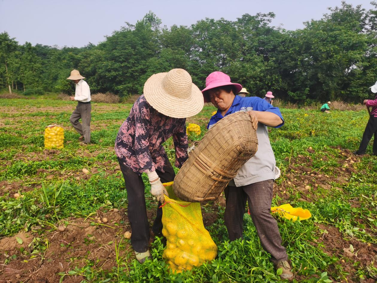 村民们忙碌的身影映衬着金黄的收获。据东方年华农业负责人田水荣介绍,60余亩土豆,预计产量可达到11万斤,不仅为东方年华带来了丰硕的成果,也让在东方年华务工的村民们收入有提升。