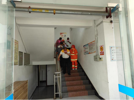 活动中针对转移人员、器材使用等项目进行实操,同步进行消防、反诈宣传。