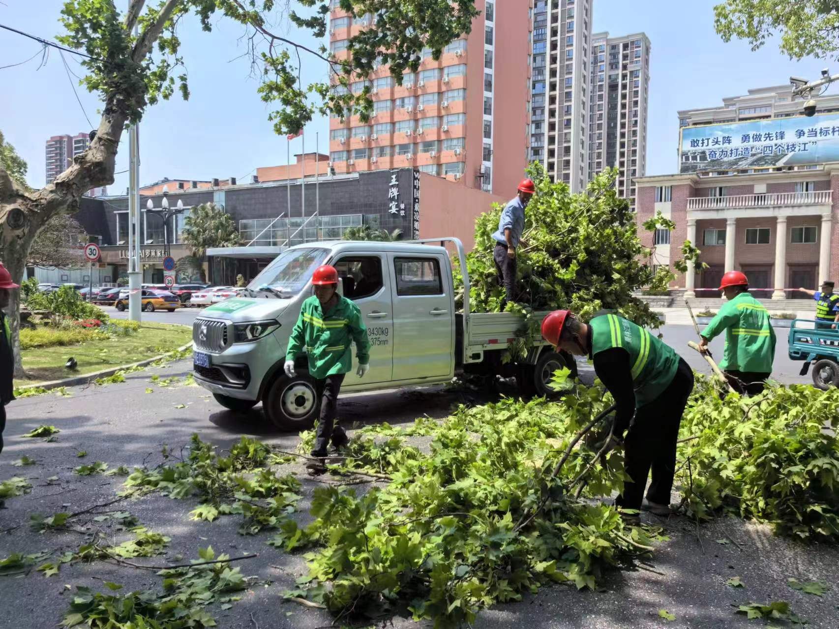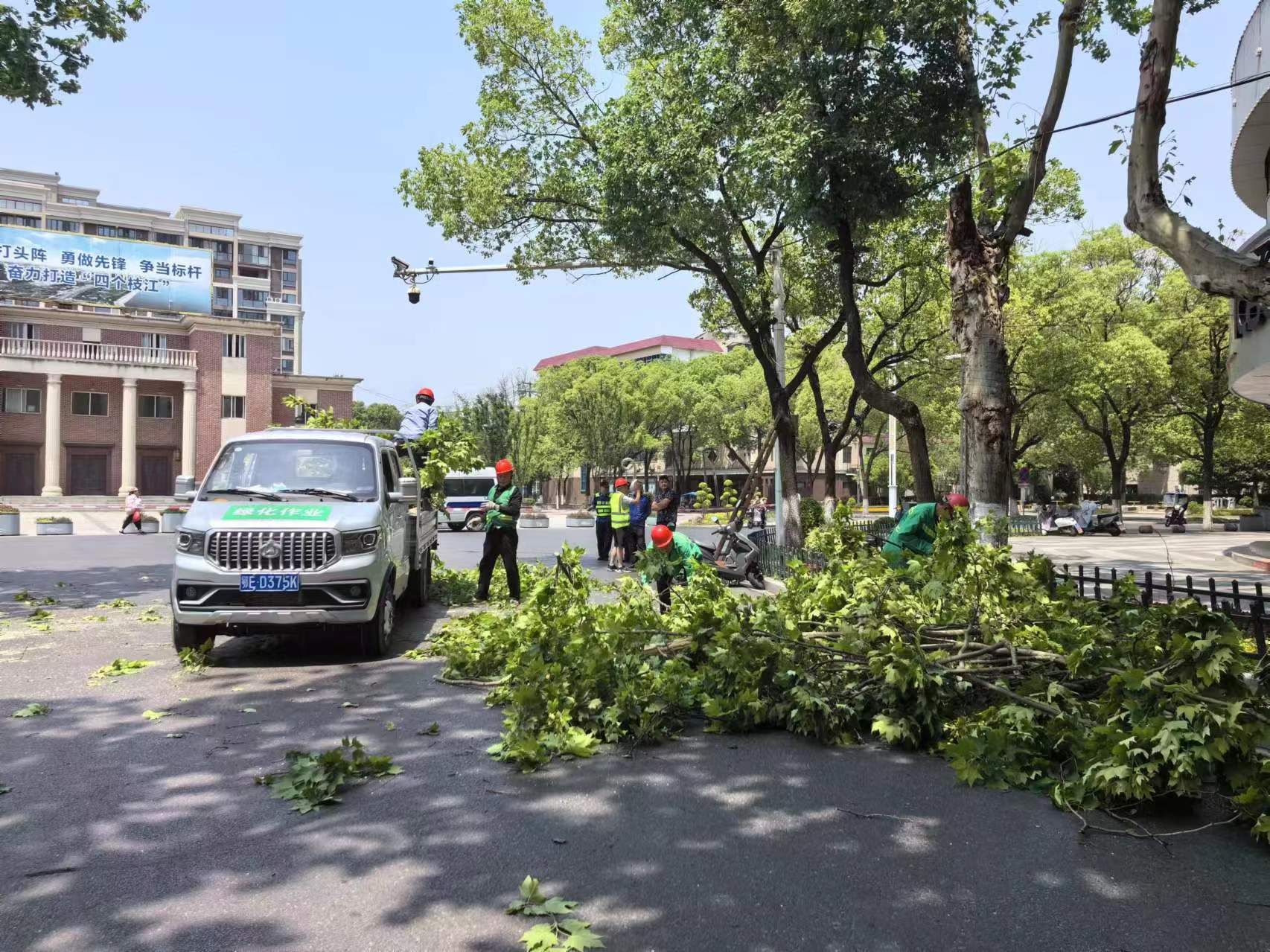 为应对大风天气,市住建局按照应急预案派出专人、车辆对全市公园、广场、道路的绿化树木进行全面巡查,做好隐患排查及处置工作,防止意外事故发生。