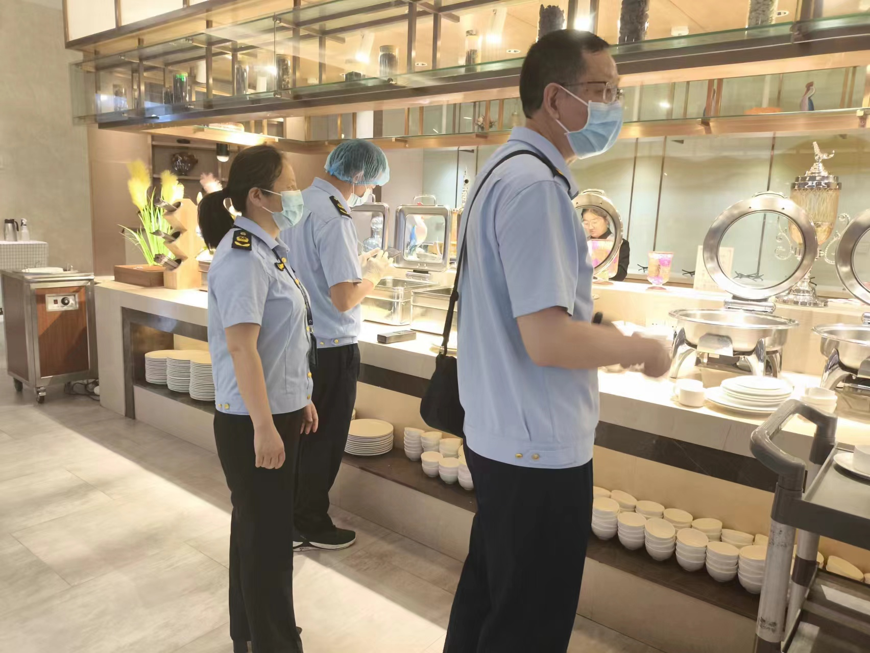 事中驻点监督。市场监管局派驻2名食品安全保障人员,对挑战赛期间餐饮服务实施驻点保障、全程监督。一是核对食谱,与现场提供食材是否一致;二是全程监督,加工制作过程是否规范;三是督促留样,并做好记录,同时派出食品快检车和2名食品快检员现场对供餐酒店购进的食材进行快速检测,做到第一时间发现问题、第一时间处置问题,确保食品质量安全可靠。赛事期间,共计开展快速检测35批次,排除了问题隐患,有效保障了200余名参赛运动员及工作人员的饮食安全。
