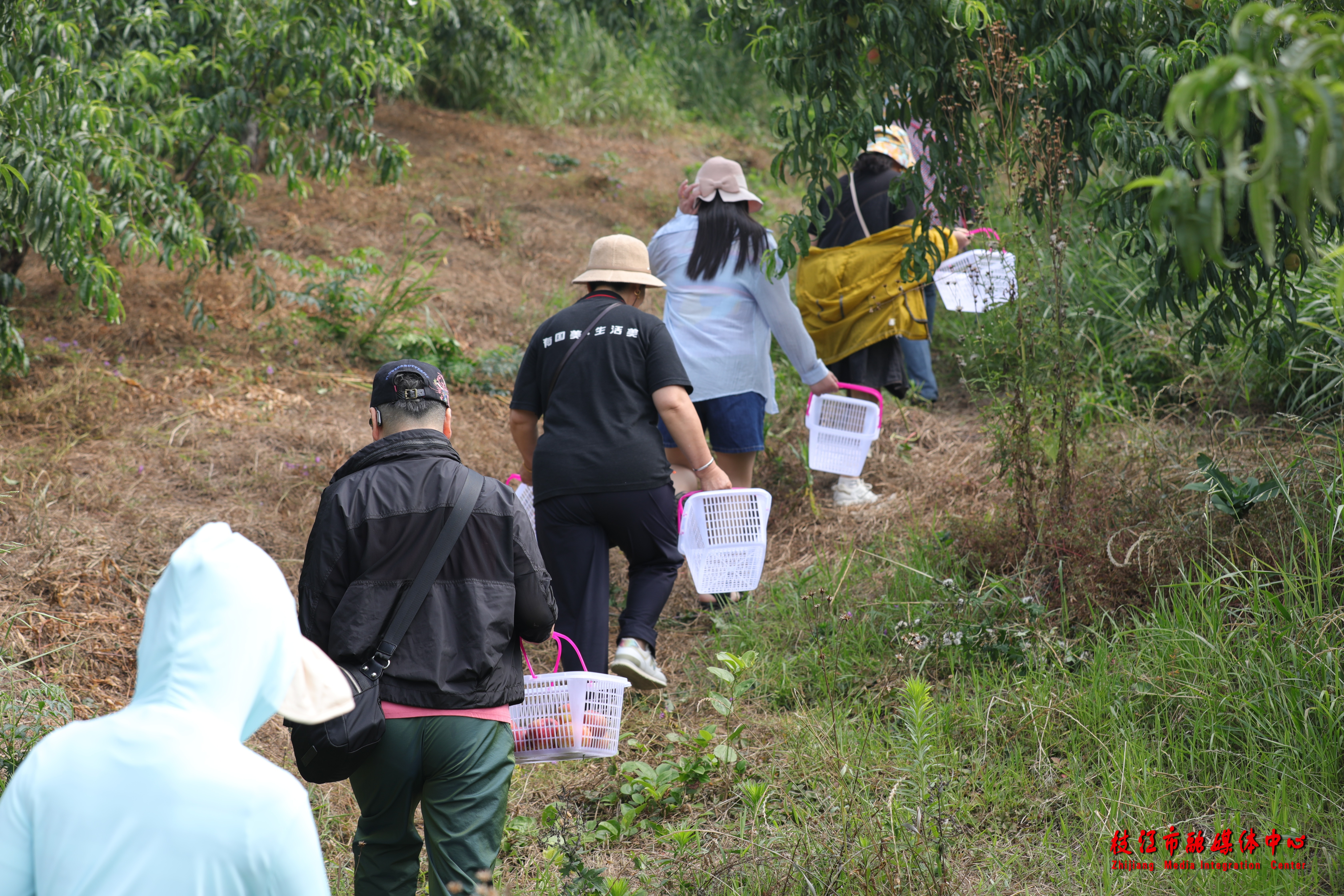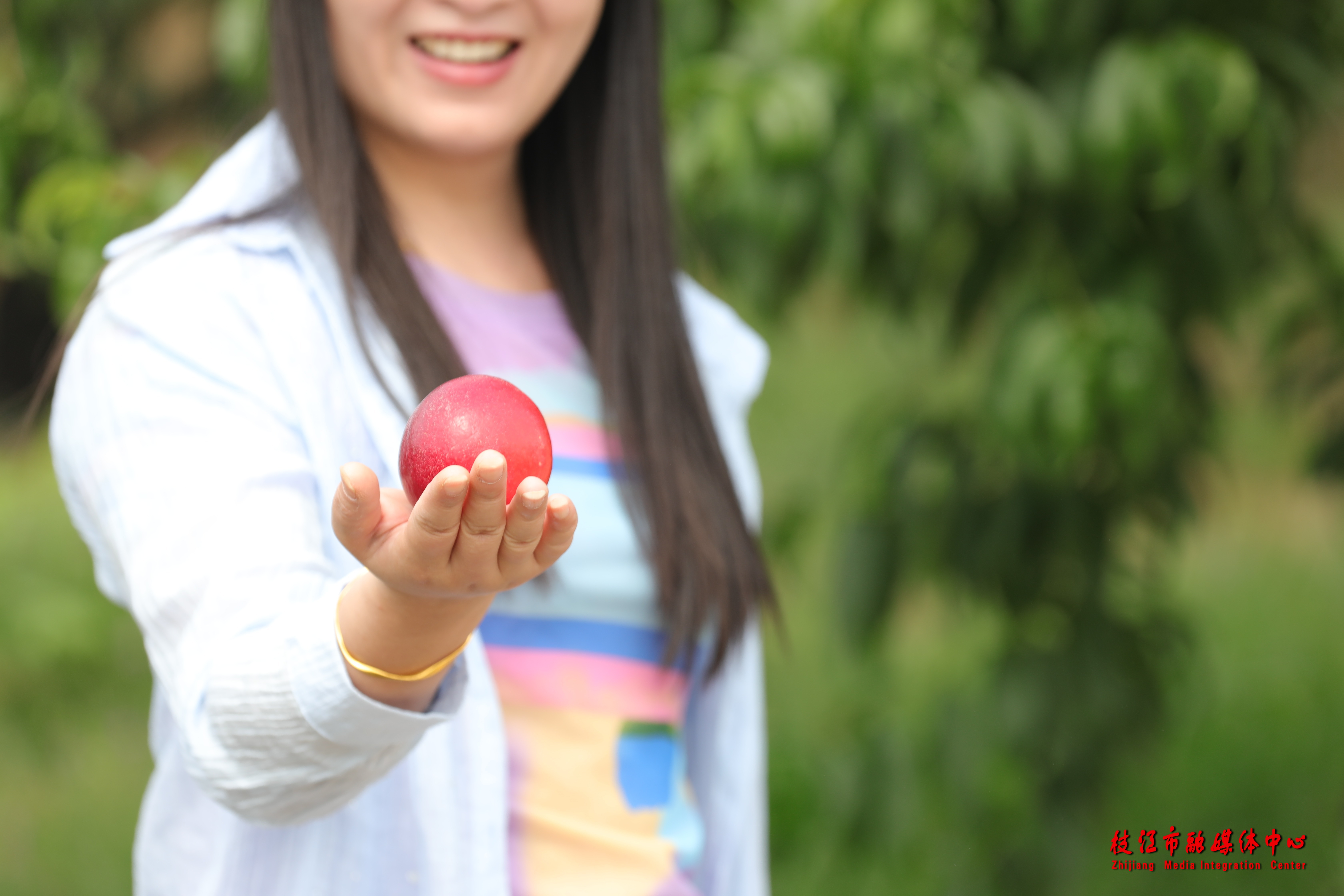 硕果挂枝头,六月桃香浓。时下正是桃子成熟上市的大好时节,在仙女镇黄金堂家庭农场的桃园里,漫山遍野的桃树郁郁葱葱,一个个金灿灿、红彤彤的桃子挂满树梢,弥漫着诱人的果香,让人垂涎欲滴。7点钟不到,安顿好采摘的客人,园主陈启春和工人们趁天气凉爽,将采摘好的桃子挑选、套袋、装箱……