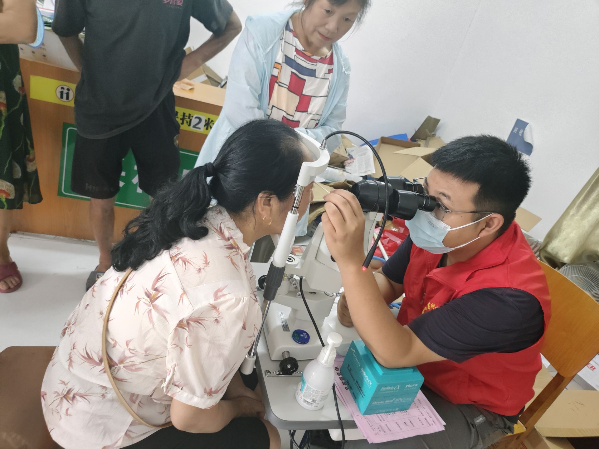 活动现场,医护人员用专业的医疗设备为60岁以上老年人和其他眼疾患者提供无偿义诊服务,对每位患者的眼压、视力等情况进行检查,并提出治疗意见,确保农村贫困白内障患者得到及时有效治疗,重获光明,让有困难的眼病群众享受医疗救助服务。