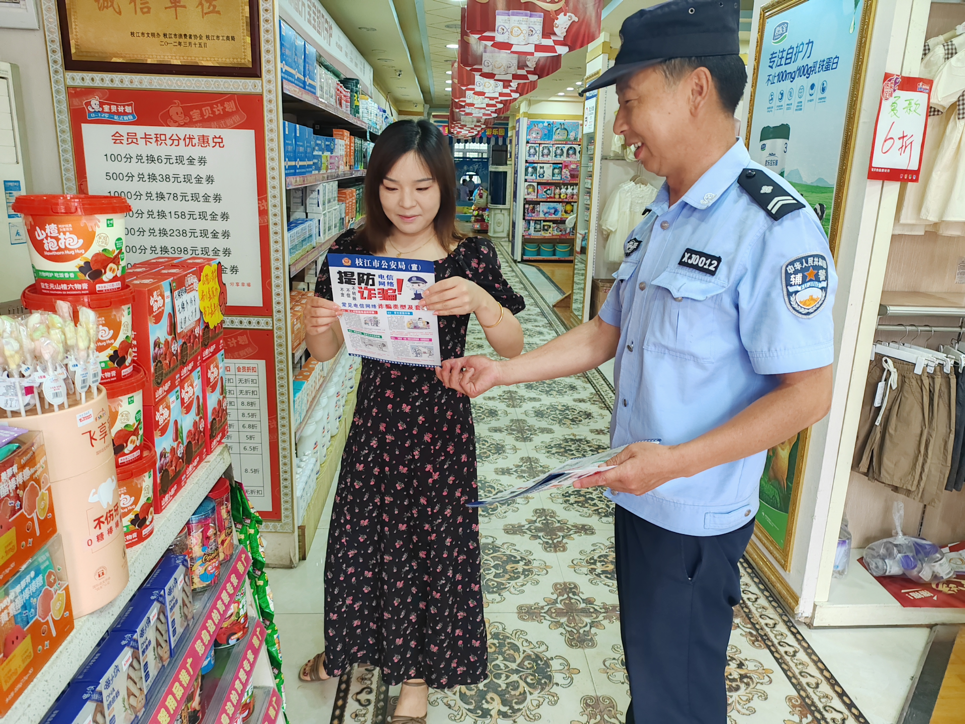 枝江融媒(通讯员 赵春晗)为切实提升群众防范电信网络诈骗意识和识骗防骗能力,有效预防电信网络诈骗案件的发生,6月中旬以来,安福寺派出所组织民辅警,围绕近期诈骗手段多样化、诈骗手段翻新化等问题,深入辖区商铺开展预防电信网络诈骗宣传活动,以此增强商铺经营户的法治意识和识骗防骗能力,持续筑牢反诈防骗安全防线。