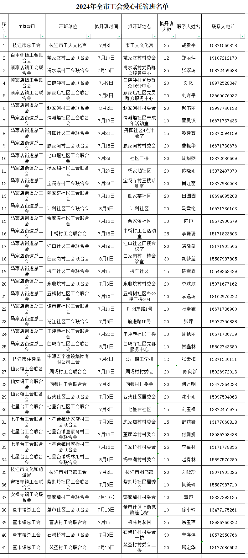2024年暑期,枝江工会将举行爱心托管班,解决职工群众假期孩子无人看护的问题;团市委、市少工委也将继续开办“希望家园·暑假学堂”。具体信息如下: