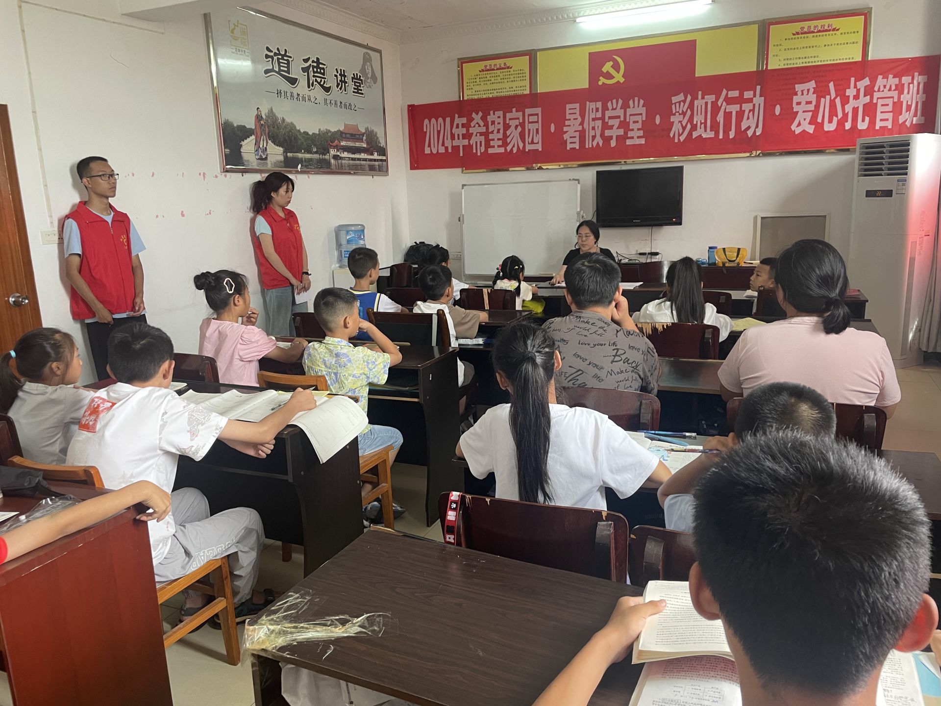 托管班由社区工会精心策划与实施,课程设计兼顾学习与娱乐,不仅包括传统的文化课辅导,还设有书法、绘画等艺术教育,以及篮球等体育活动。