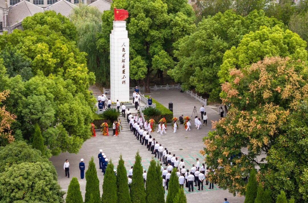 坐落于长江之畔的枝江烈士陵园中央,革命烈士纪念碑巍然耸立。广场上,老战士、烈属、退役军人、现役军人家属、劳模、先进人物和驻枝部队官兵、机关干部、学生等各方面代表手捧鲜花,面向纪念碑整齐列队。激昂雄壮的《义勇军进行曲》响起,全场一起高唱中华人民共和国国歌。随后,全场肃立,向为中国人民解放事业和共和国建设事业英勇献身的烈士默哀。默哀毕,少先队员面向纪念碑高唱《我们是共产主义接班人》,并致少年先锋队队礼。