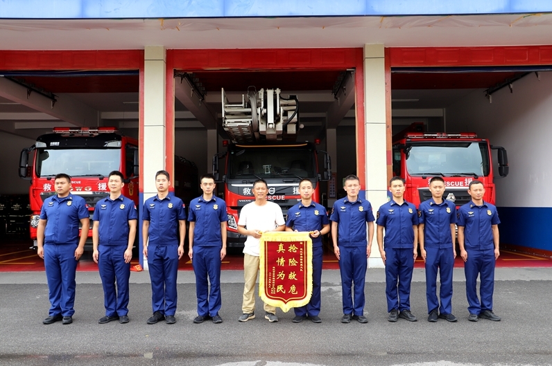 枝江融媒(通讯员 金邦国)9月15日,董市镇一村民将一面印有“真情为民 抢险救危”的锦旗赠予枝江市消防救援大队,感谢消防救援人员的紧急出动救援。