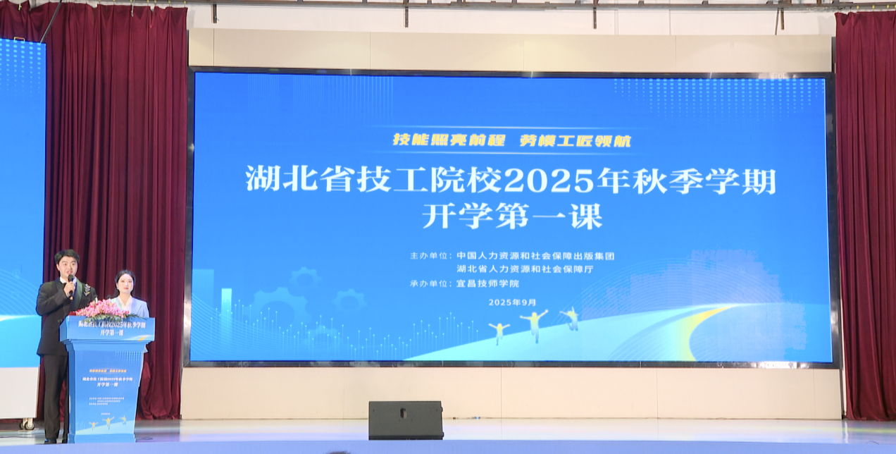 枝江融媒(记者 丁绮梦 通讯员 陆宇涵 李良华)9月15日,湖北省技工院校2025年秋季学期“开学第一课”活动启动仪式在宜昌技师学院举行。此次活动由宜昌技师学院师生主持,全省技工院校师生通过线上直播共同参与。