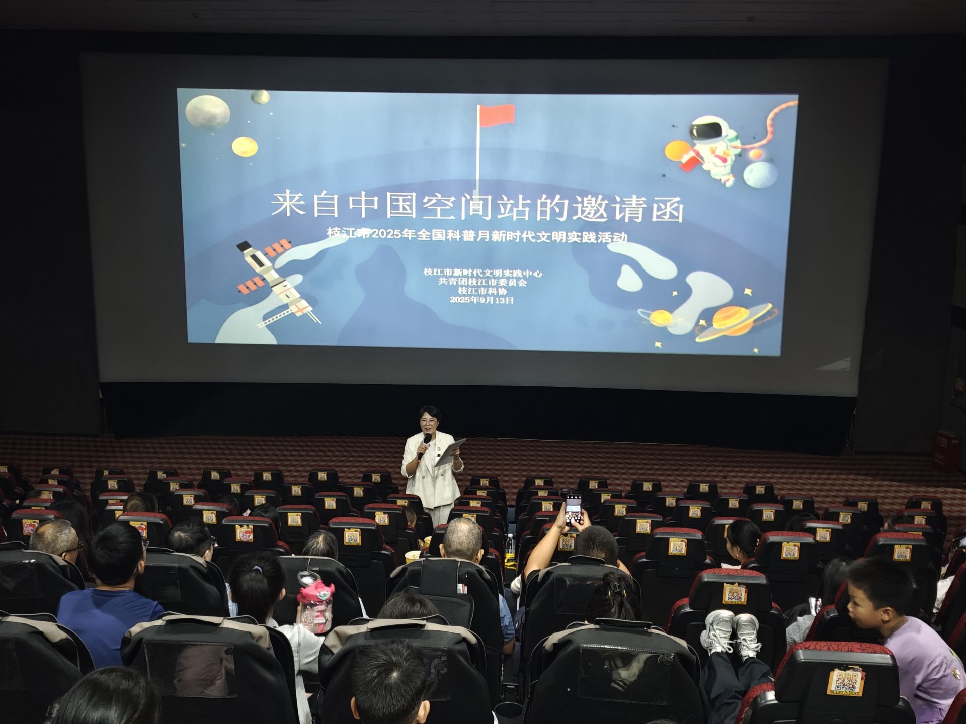 9月13日,在枝江市2025年全国科普月新时代文明实践活动现场,100余名青少年与家长收到“来自中国空间站的邀请函”,共同开启一场太空与光影融合的探索之旅。