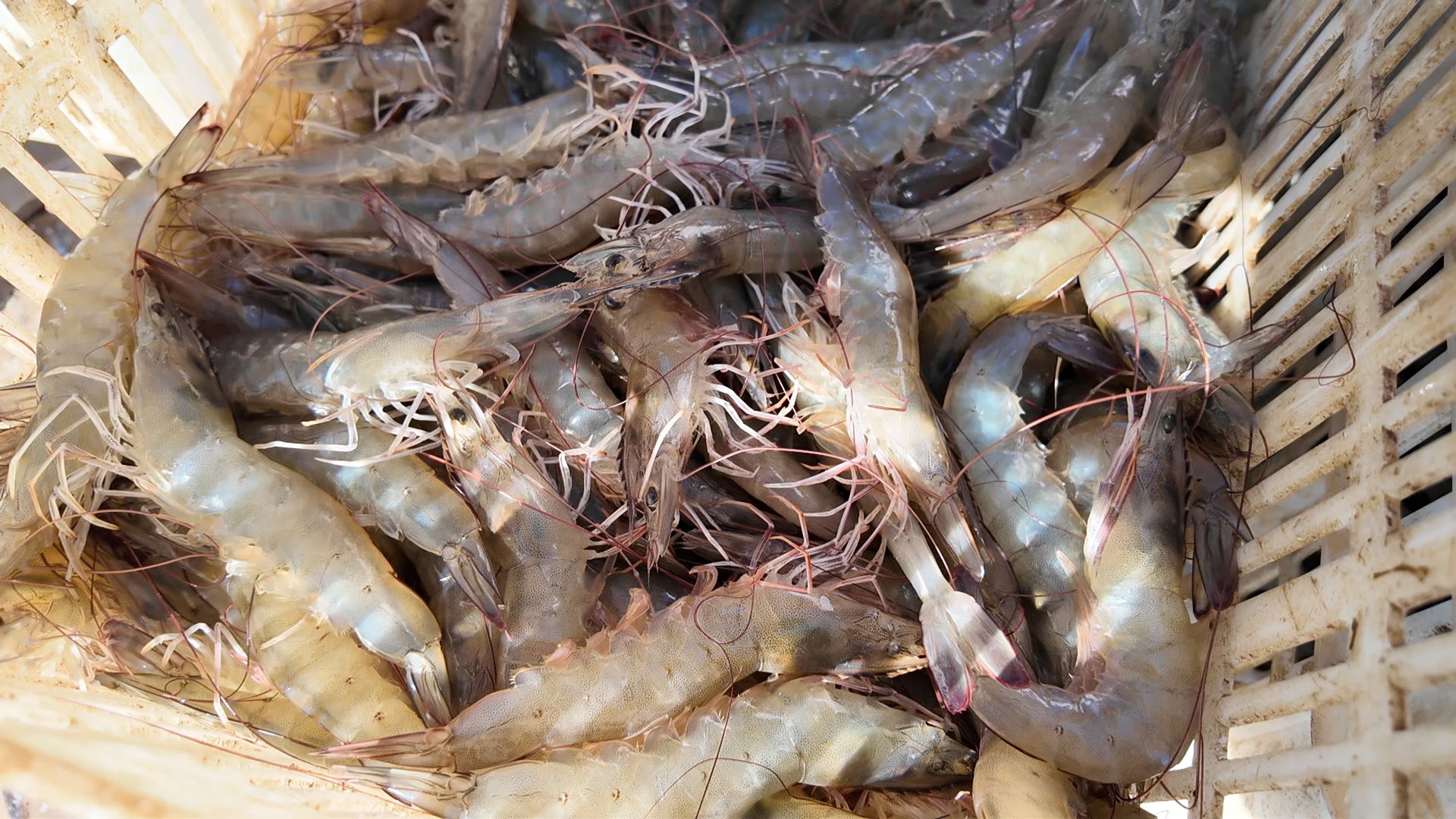 坤鹏水产养殖基地目前共有5口养殖塘,总面积30亩,预计总产量将达3万斤,平均亩产超1000斤。基地主打品种为南美白对虾,又称南美对虾。该品种原属海水虾类,具有生长快、适应性强、肉质鲜美等特点,如今通过“海鲜陆养”技术,成功在淡水环境中实现规模化养殖。