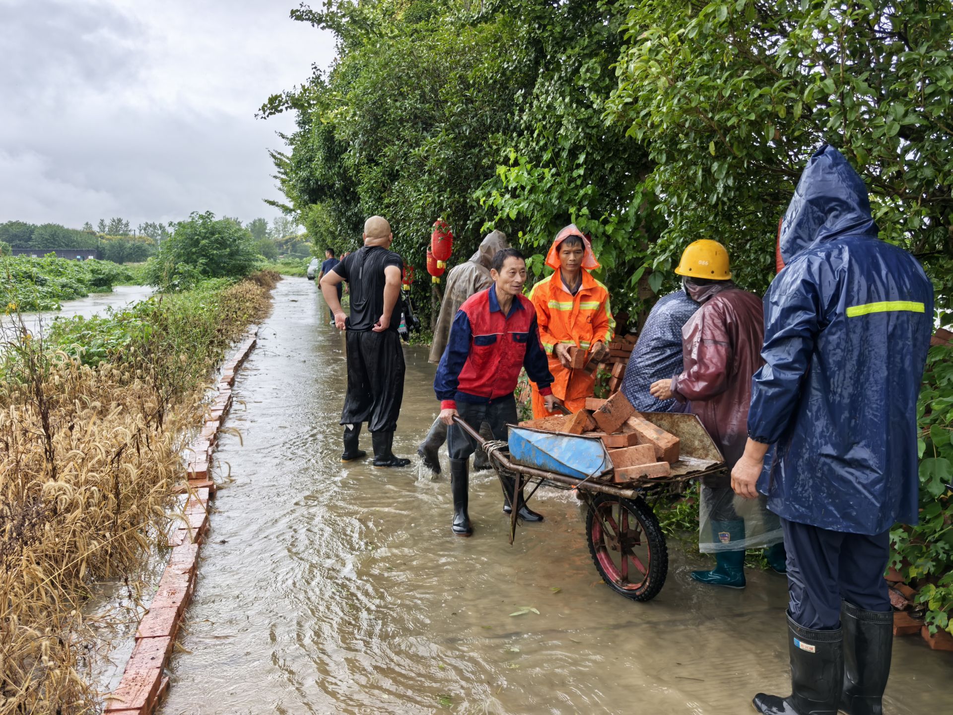 当天,接到邻居李细勤的紧急求助后,易振林仅着短裤便冒雨奔赴现场。面对不断加剧的汛情,他沉着冷静,第一时间从自家企业调度20余名工人火速支援。在他的指挥下,抢险队员分工协作、高效配合,采用草捆堵漏、砖石加固、清理排水通道等多种方式,迅速筑起一道安全防线。