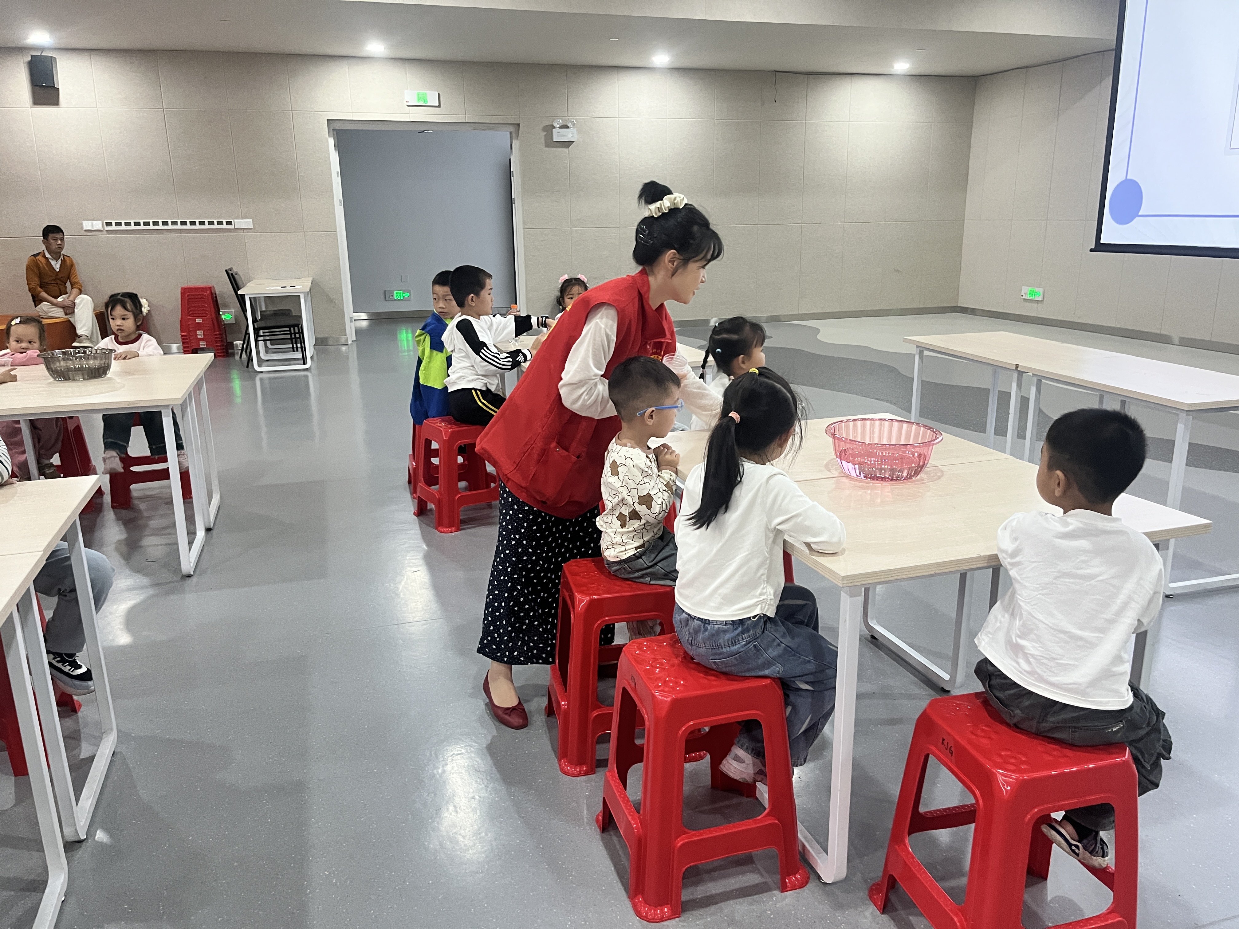活动开始,科普老师以一个简单却令人惊叹的实验吸引了所有人的目光。老师在脸盆中缓缓注入半盆清水,随后将一张餐巾纸细心揉成团,放置于杯子底部,将杯子倒扣入水中,令人惊奇的是,当杯子被缓缓提起时,杯中的纸巾竟然依旧干燥如初,未沾一滴水珠。这一神奇的现象瞬间点燃了孩子们的好奇心,他们纷纷投来惊讶与兴奋的目光。了解到了杯子里充满空气,当垂直插入水中时,杯内空气压力阻止水进入,因此杯中的纸巾不会被打湿。