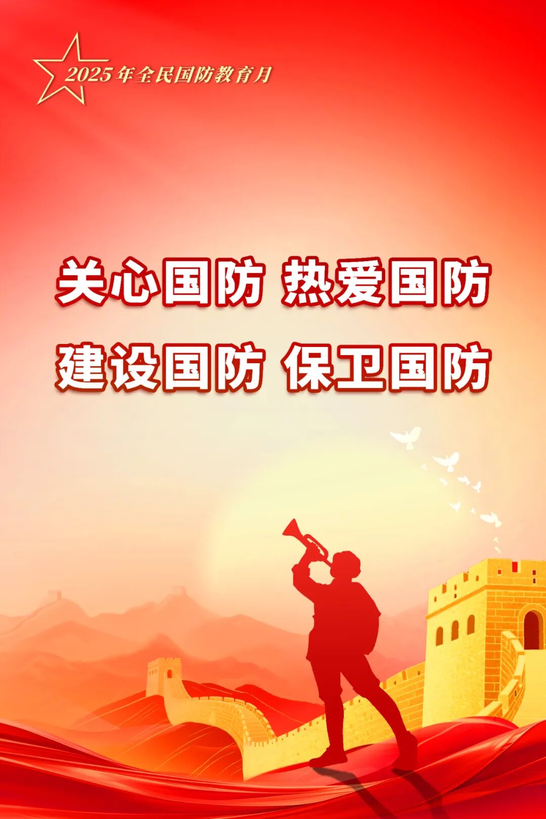 全民国防教育月丨2025年全民国防教育月海报来啦 2025-09-23 15:08 0 “国无防不立,民无防不安。” 国防是关系到 国家和民族生死存亡的根本大计 中华人民共和国的每一位公民 都应当增强国防安全意识 掌握国防安全知识 9月是 全民国防教育月 关心国防、热爱国防 建设国防、保卫国防 我们一起努力!