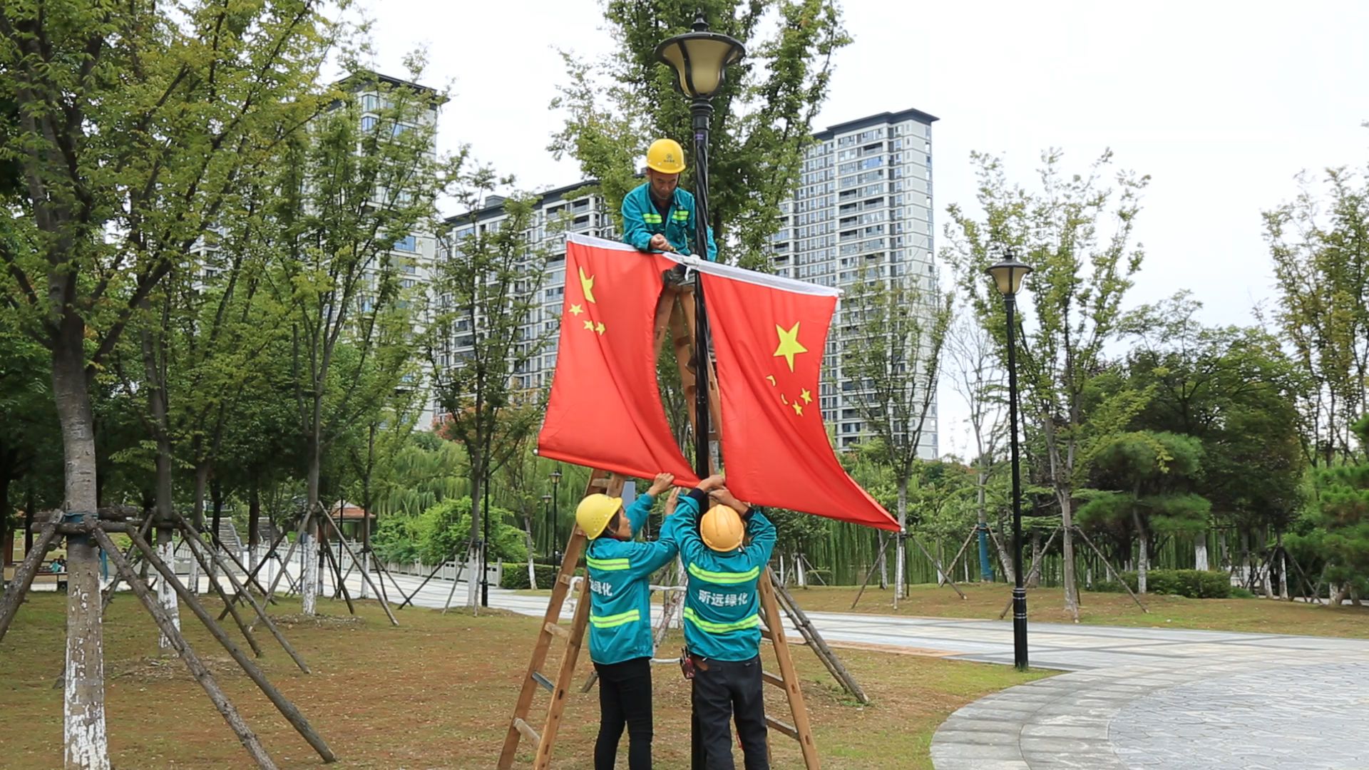 与此同时,枝江市园林绿化中心也在城市主要公园点缀上鲜明的国旗色彩。道路养护股胡杨阳表示:“我们在枝江北站广场、丹阳公园、五柳公园、白鸭寺公园等主要公园共计悬挂国旗260余面,同样落实了专人巡查制度,确保国旗的庄严形象。”