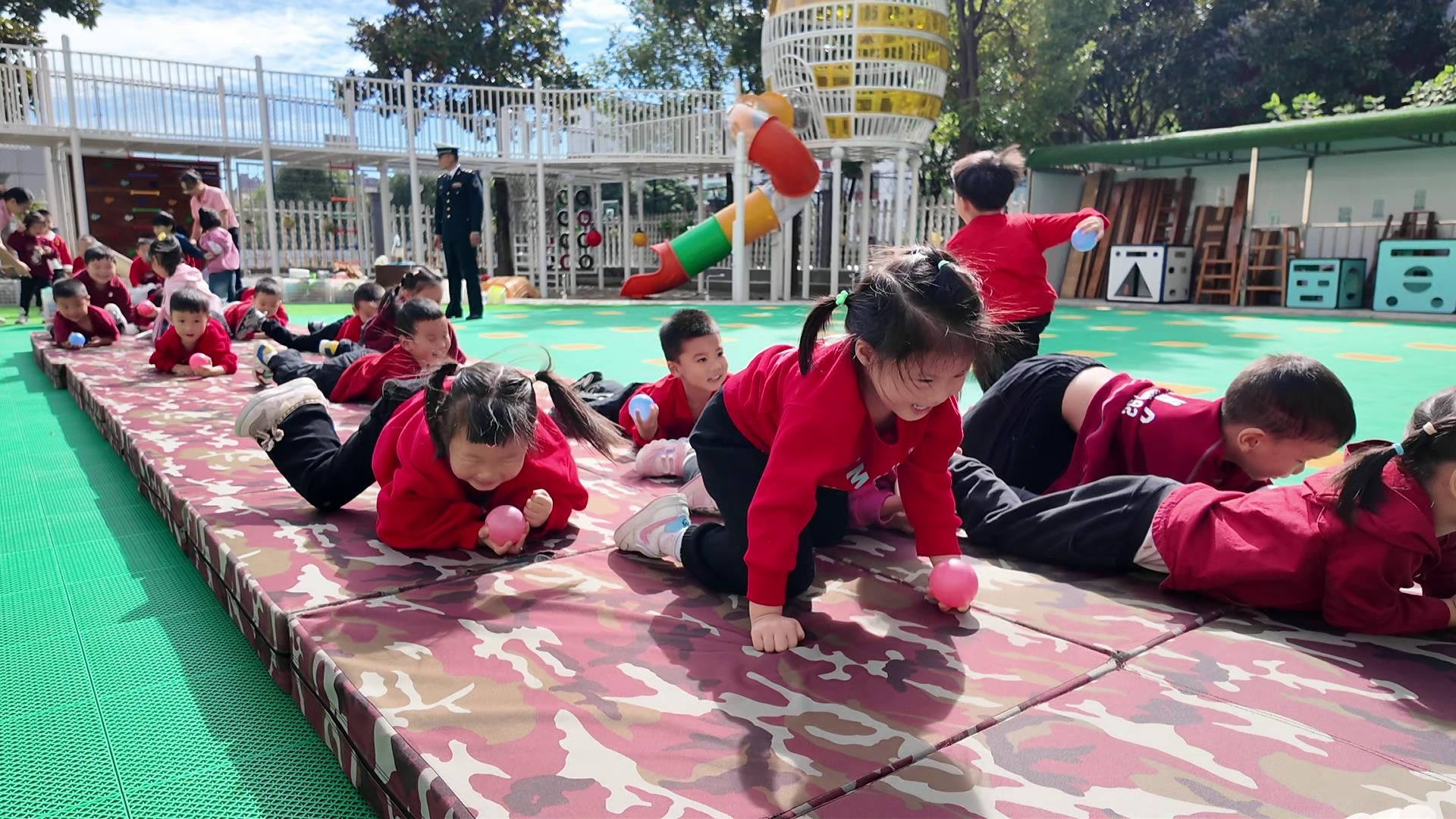 操场上,军事主题游戏将活动推向高潮。孩子们在“匍匐前进”游戏中运输海洋球“弹药箱”,在“紧急集合”游戏里听哨声迅速行动、排队集合,锻炼了反应能力和纪律意识。操场洋溢着欢声笑语,军人家长也积极参与其中,与孩子们共享运动与合作的快乐。