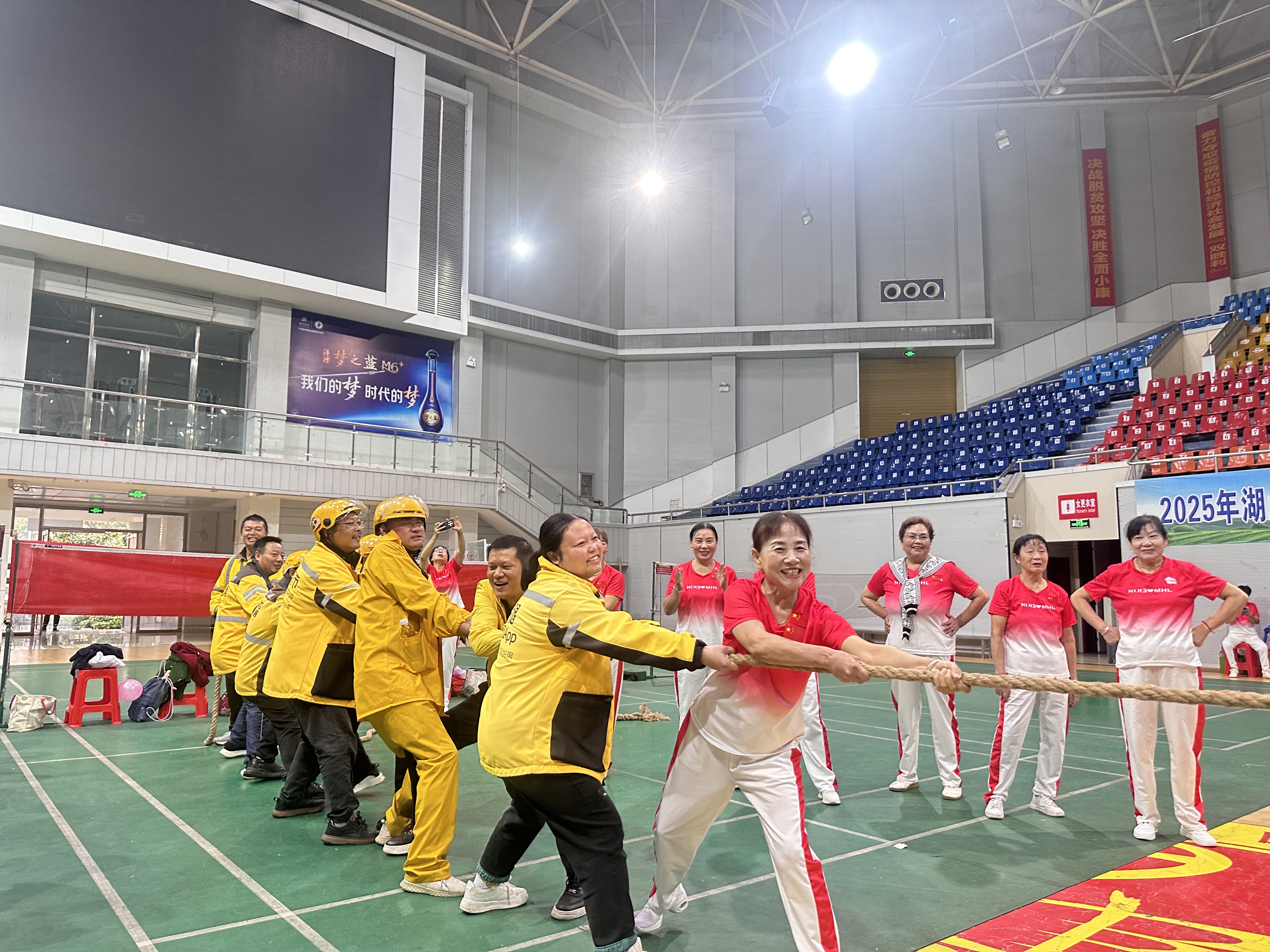 赛场上,欢呼声呐喊声汇成一片。“背靠背运气球”环节,参赛者们两两配合,侧身夹球、步调一致向前冲刺。紧接着的拔河比赛将现场气氛推向高潮。各组参赛者紧握绳索、扎稳马步、使出浑身解数往后拉扯。“好运”瓶挑战中,调整瓶身时默契的安静与成功的欢呼交织,展现了团队智慧。趣味算术环节,脑力与体力的双重考验,拉近了彼此的距离。