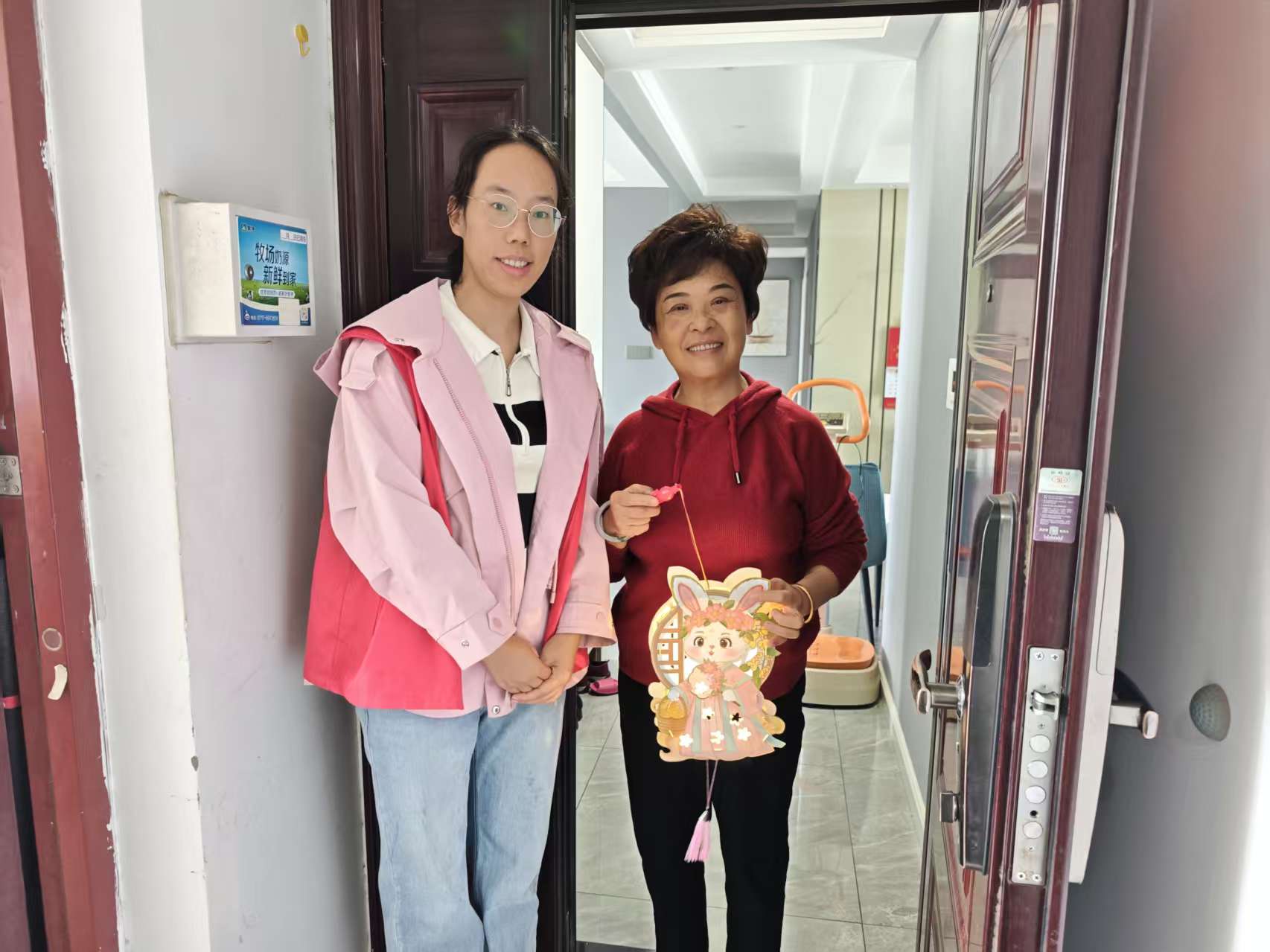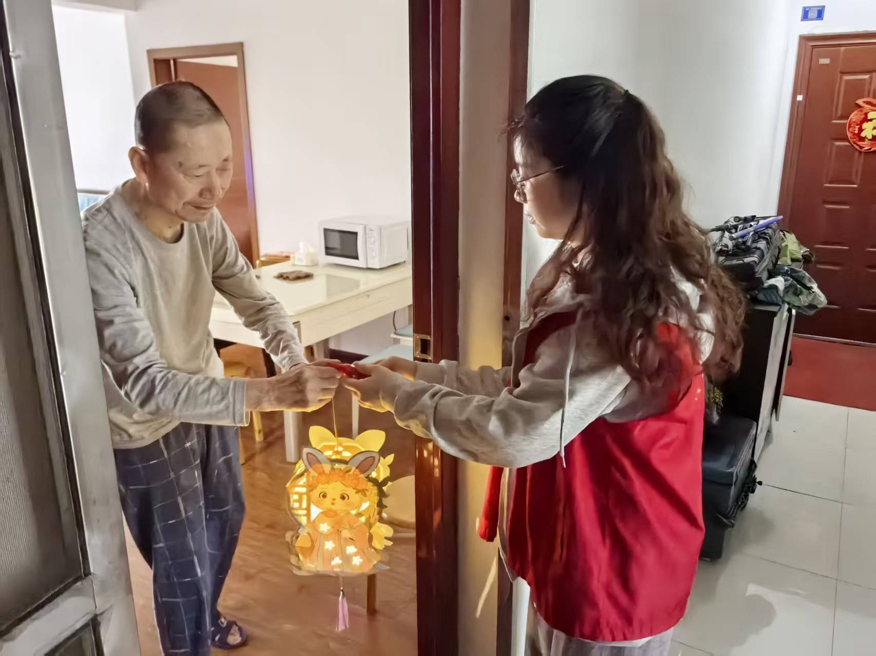 敲开侨眷杨阿姨的家门,志愿者递上花灯笑着说:“阿姨,中秋节快到了,这是咱们社区一起做的花灯,祝您节日快乐!”杨阿姨捧着花灯说道:“谢谢你们想着我,这灯亮堂堂的,心里也暖烘烘的。”在行动不便老人孙爷爷家中,暖黄的灯光映着老人的笑容,定格成秋日里最治愈的画面。